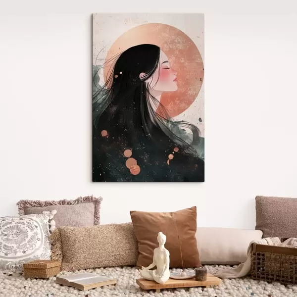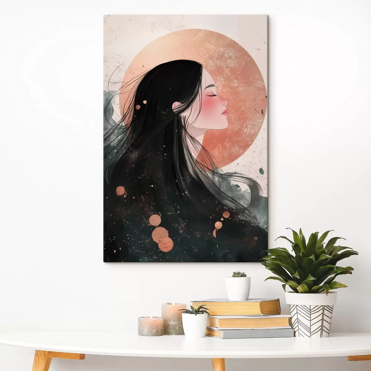 Cuadros Hermosa chica, estilo oriental, sol, colores rosados Nr s42195