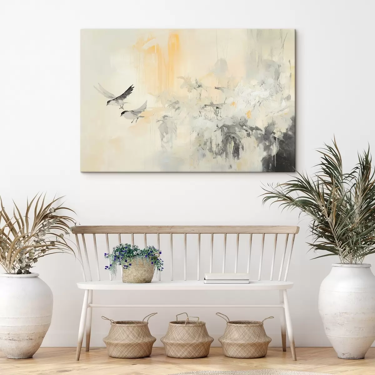 Cuadros Abstracción con pájaros, estilo acrílico, colores gris y beige Nr s42206