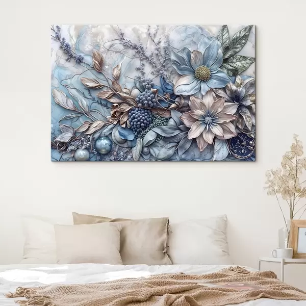Cuadros Exuberantes flores abstractas de textura detallada con grandes y vibrantes flores azules y rosas, bayas y otros elementos botánicos Nr s42210