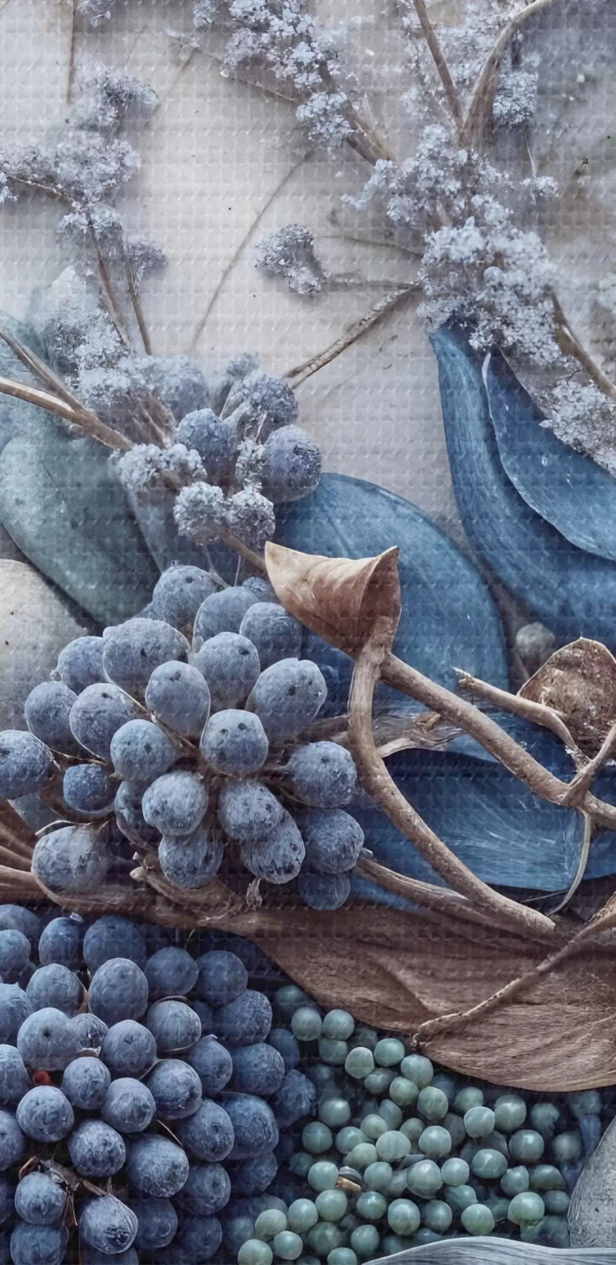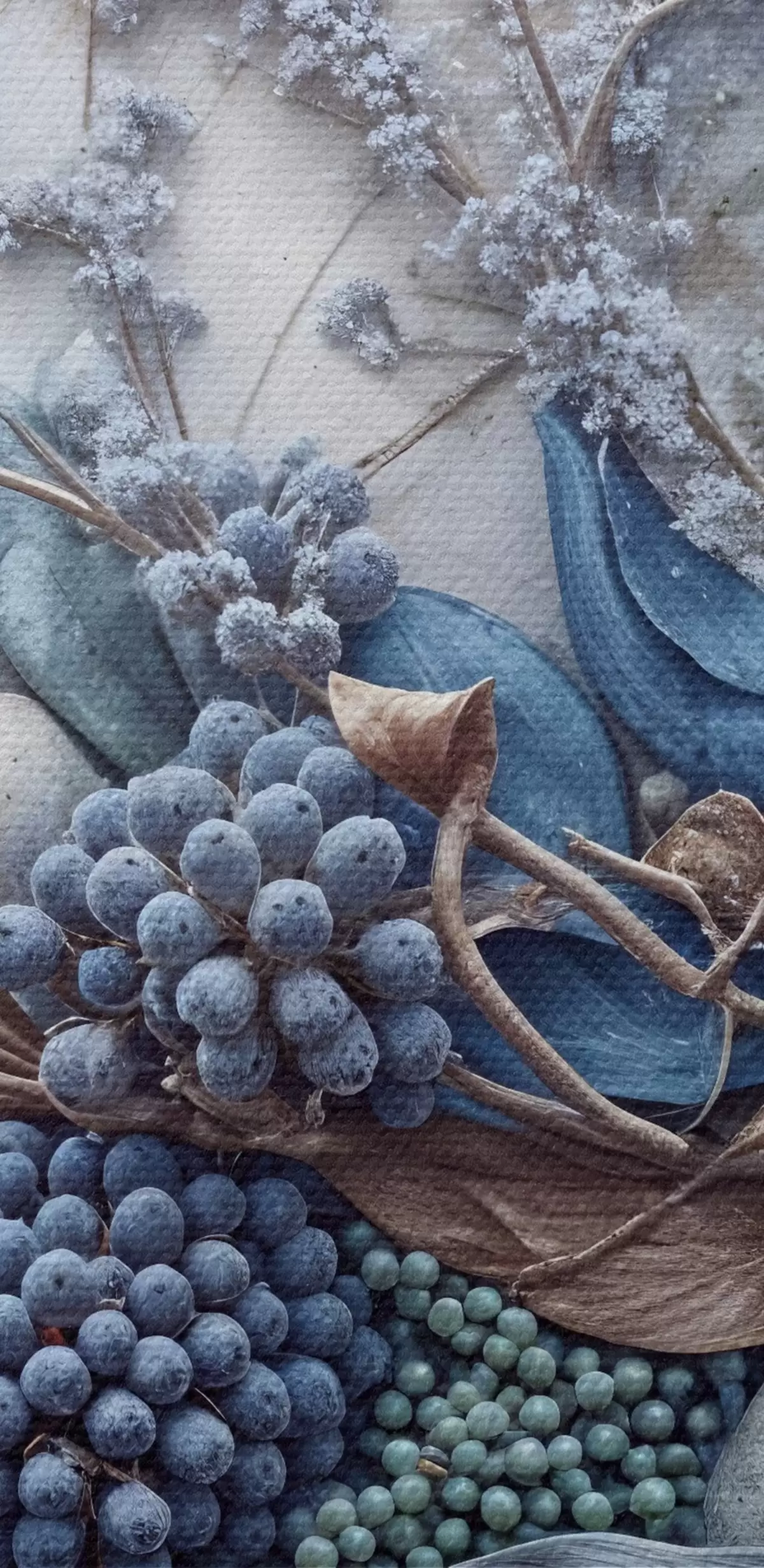 murales de pared Exuberantes flores abstractas de textura detallada con grandes y vibrantes flores azules y rosas, bayas y otros elementos botánicos  s42210