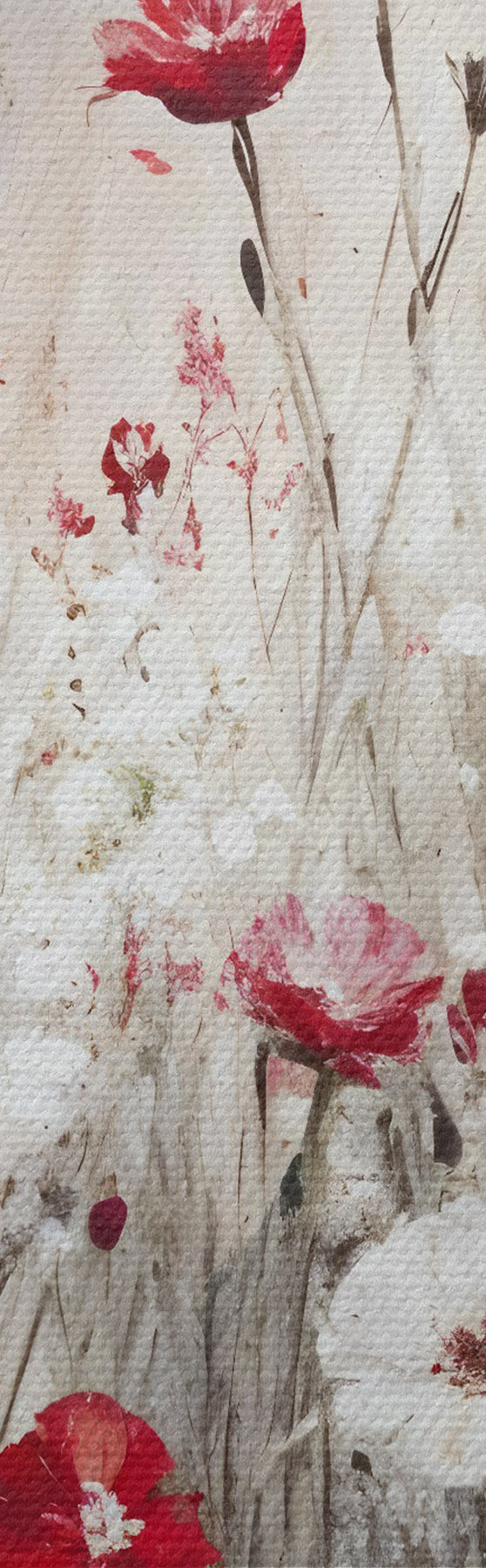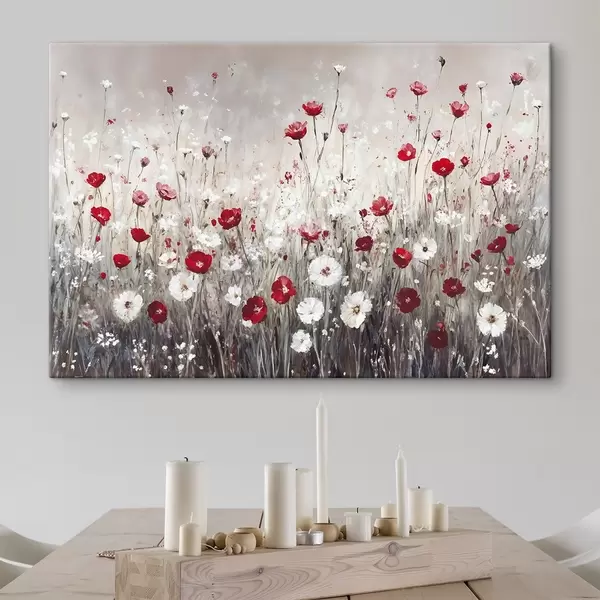 Cuadros Imitación abstracta al óleo de un campo de flores rojas y blancas de amapolas y margaritas sobre un fondo gris texturado Nr s42213