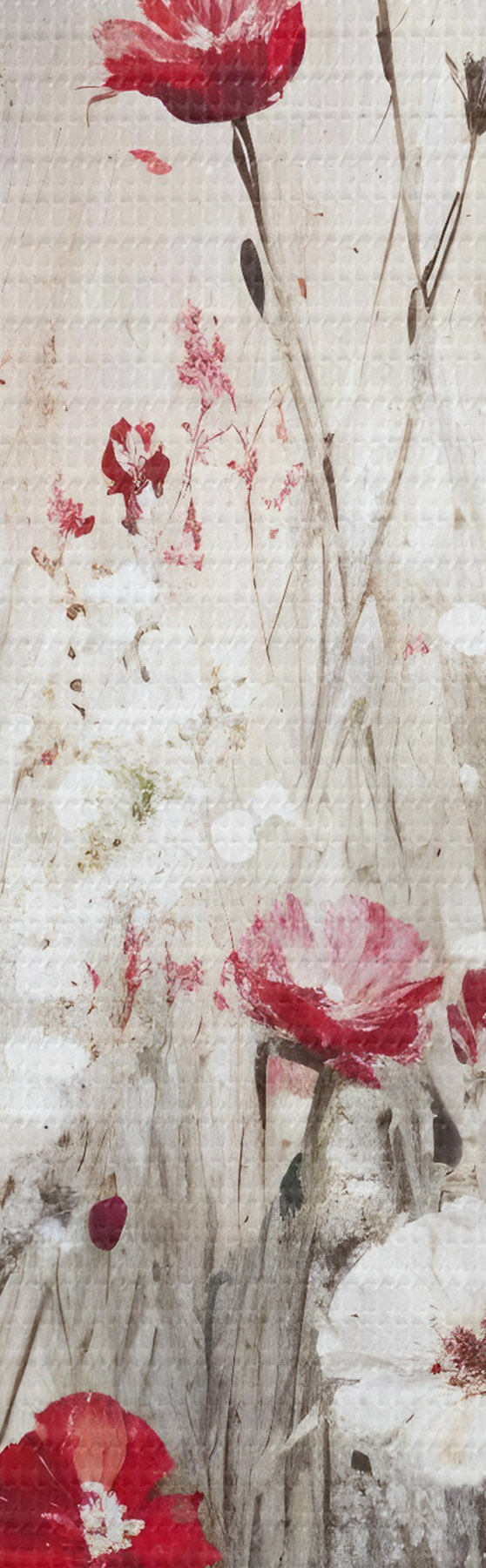 murales de pared Imitación abstracta al óleo de un campo de flores rojas y blancas de amapolas y margaritas sobre un fondo gris texturado s42213