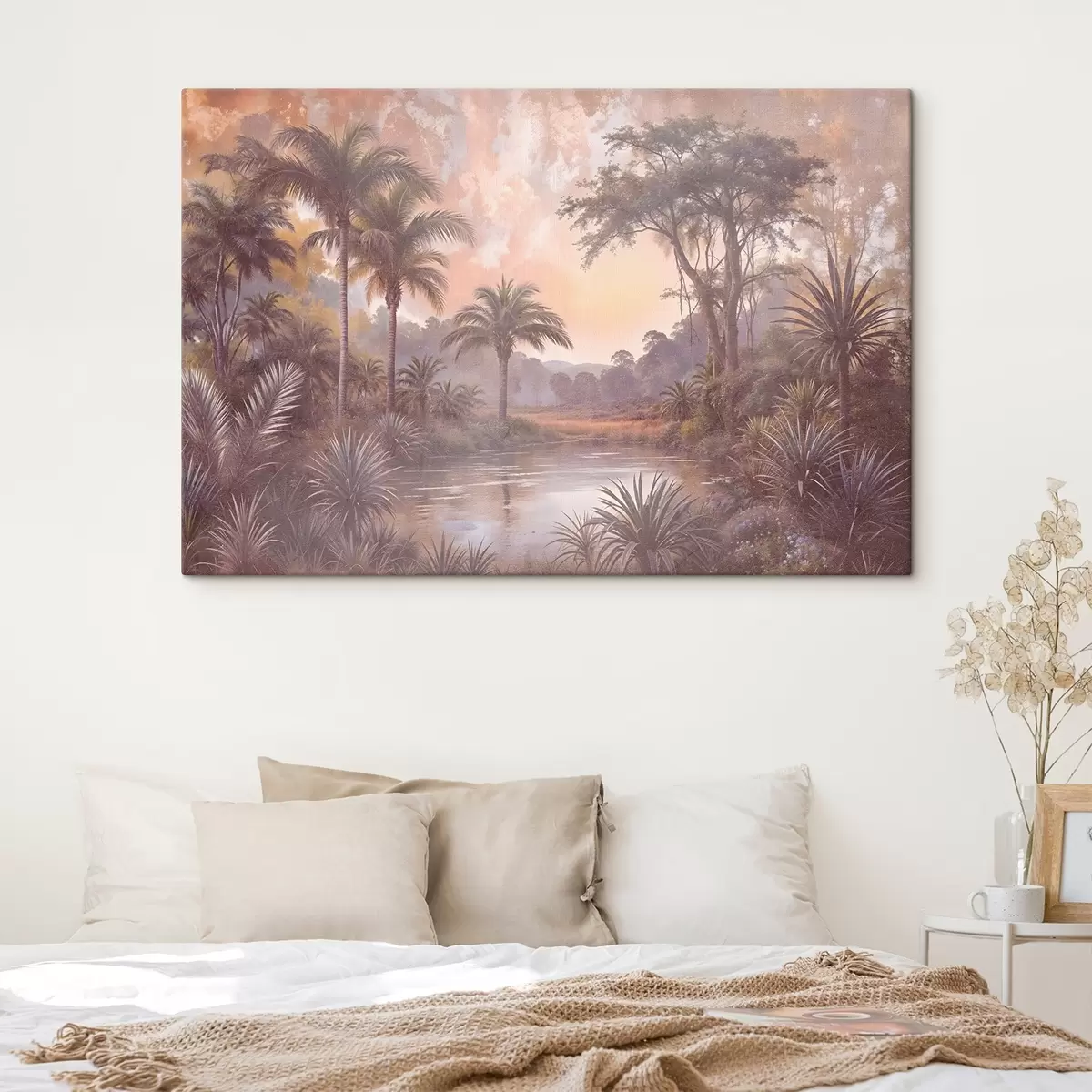 Cuadros Un paisaje de textura tropical con un lago sereno rodeado de exuberantes palmeras y otros follajes Nr s42219