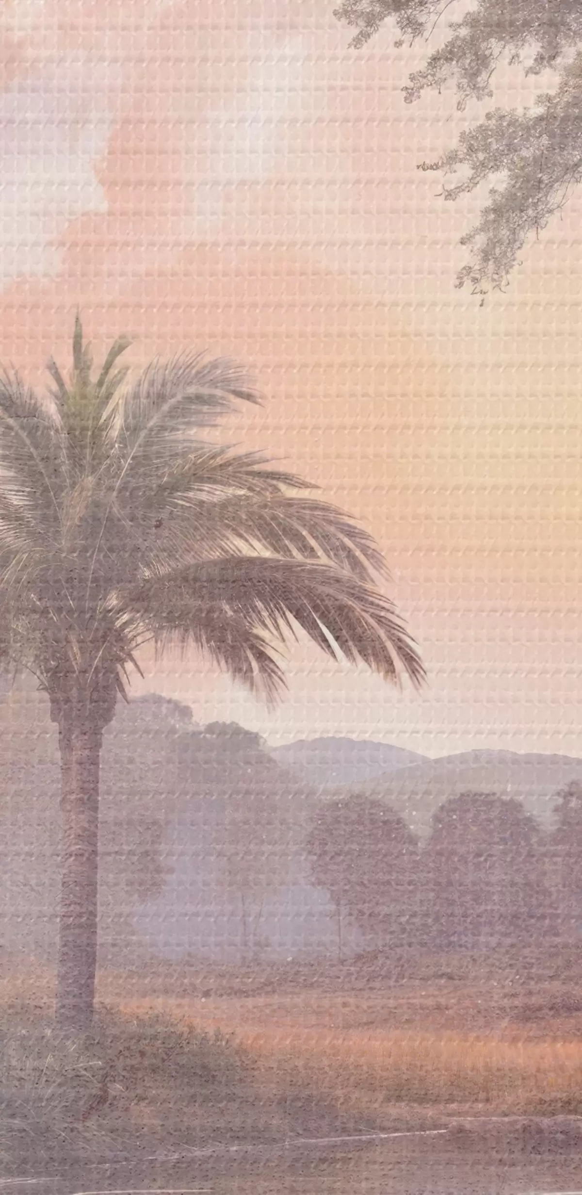 murales de pared Un paisaje de textura tropical con un lago sereno rodeado de exuberantes palmeras y otros follajes s42219