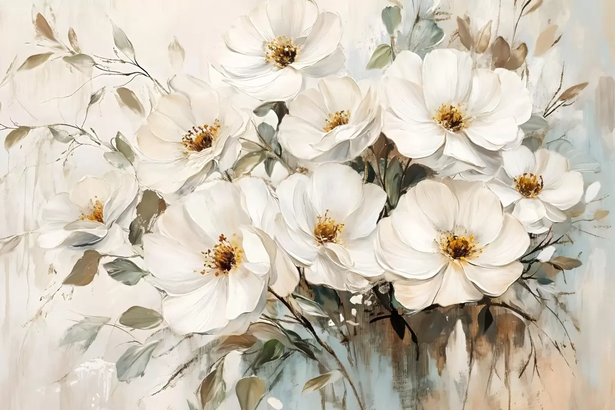 Cuadros Ramo de grandes flores blancas al óleo con centros amarillos sobre fondo claro Nr s42222