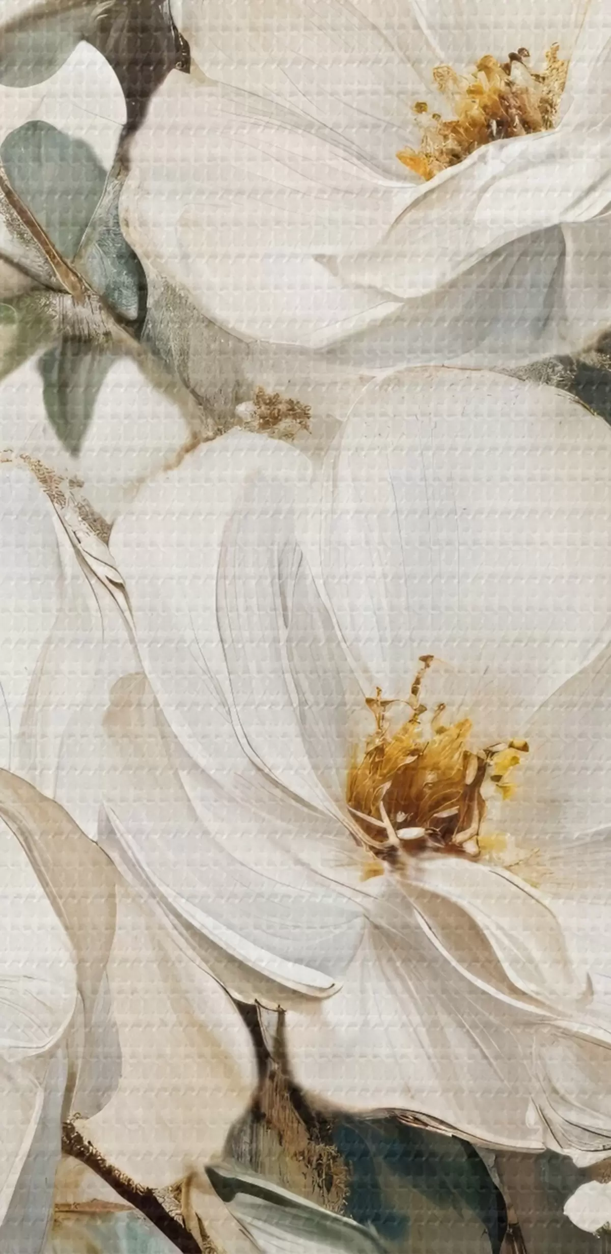 murales de pared Ramo de grandes flores blancas al óleo con centros amarillos sobre fondo claro  s42222