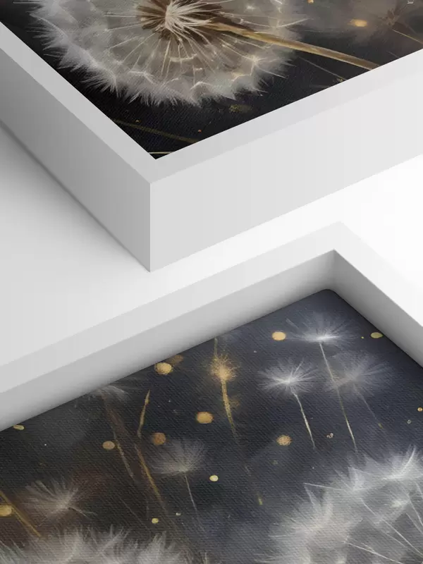 Cuadros Flores de diente de león con sus esponjosas cabezas de semillas blancas sobre un fondo oscuro, creando una atmósfera mágica Nr s42235