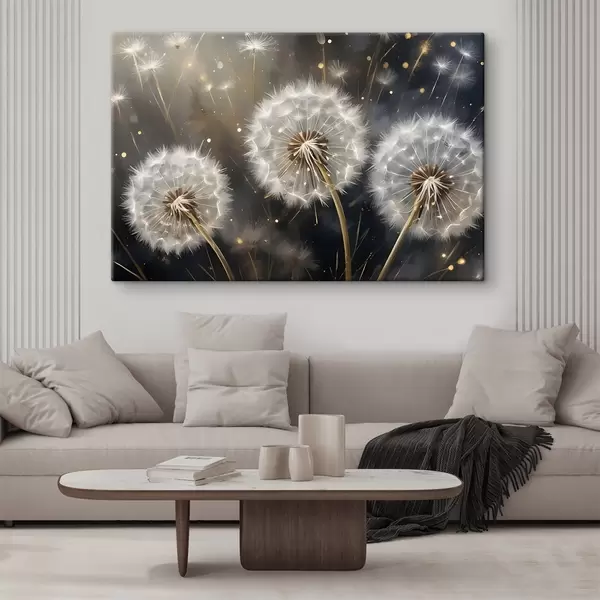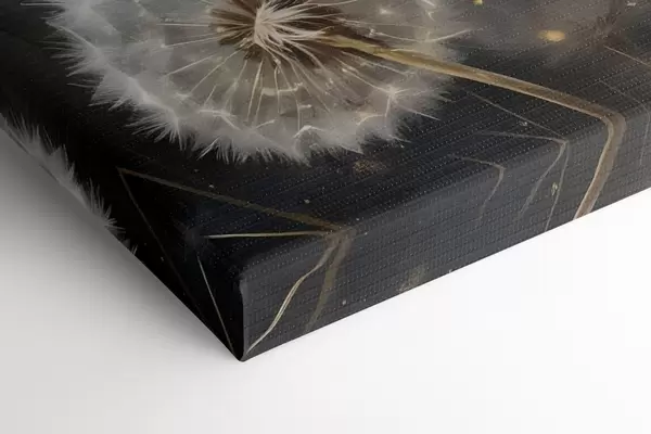 Cuadros Flores de diente de león con sus esponjosas cabezas de semillas blancas sobre un fondo oscuro, creando una atmósfera mágica Nr s42235