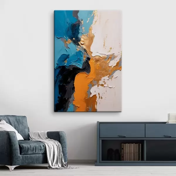 Cuadros Pintura abstracta con colores azul, blanco y amarillo Nr s42254