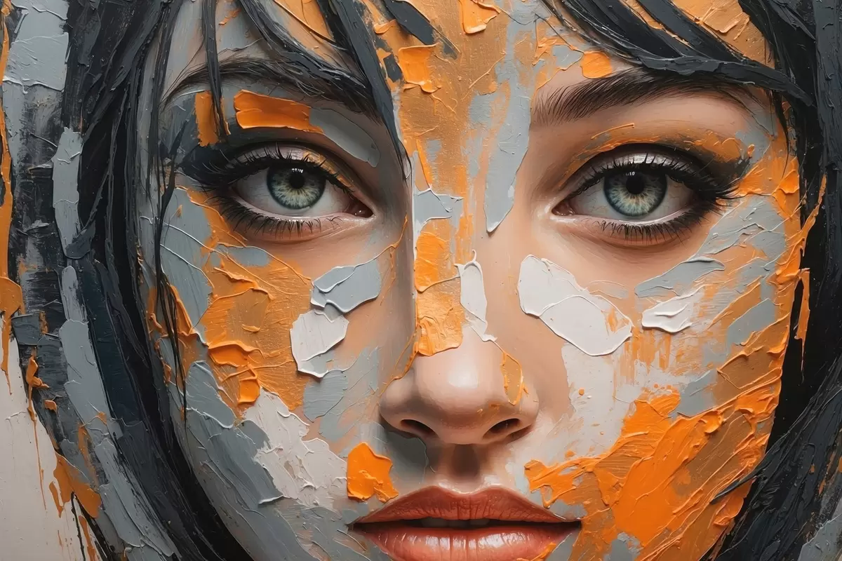 Cuadros Cara de niña con pintura blanca y amarilla Nr s42259