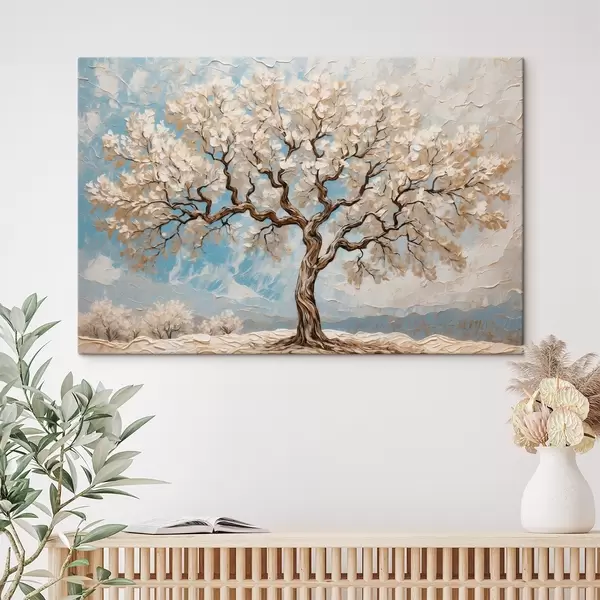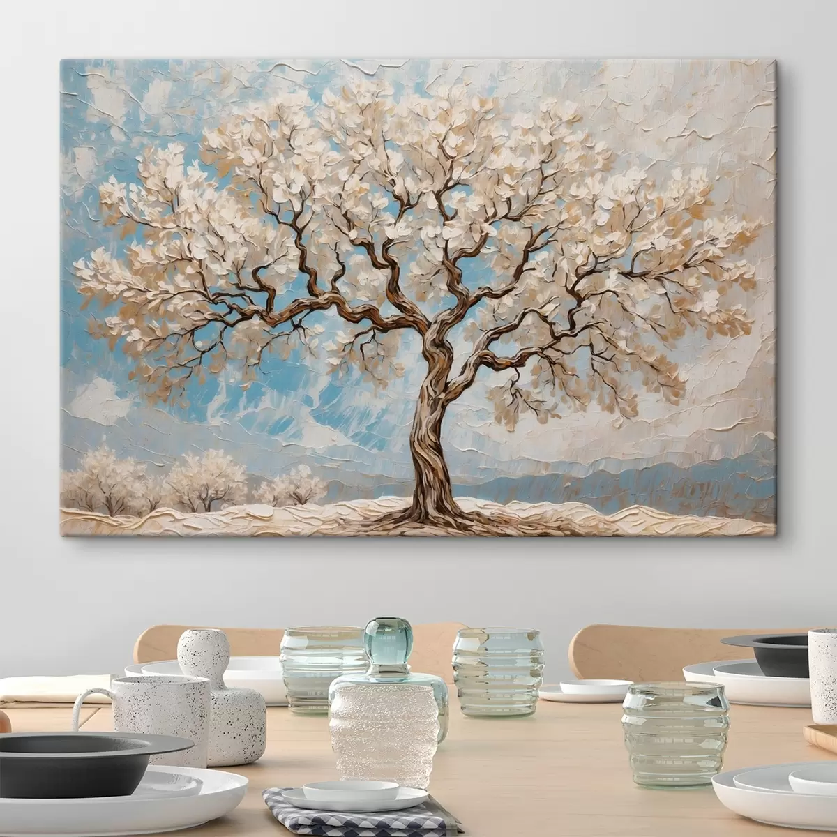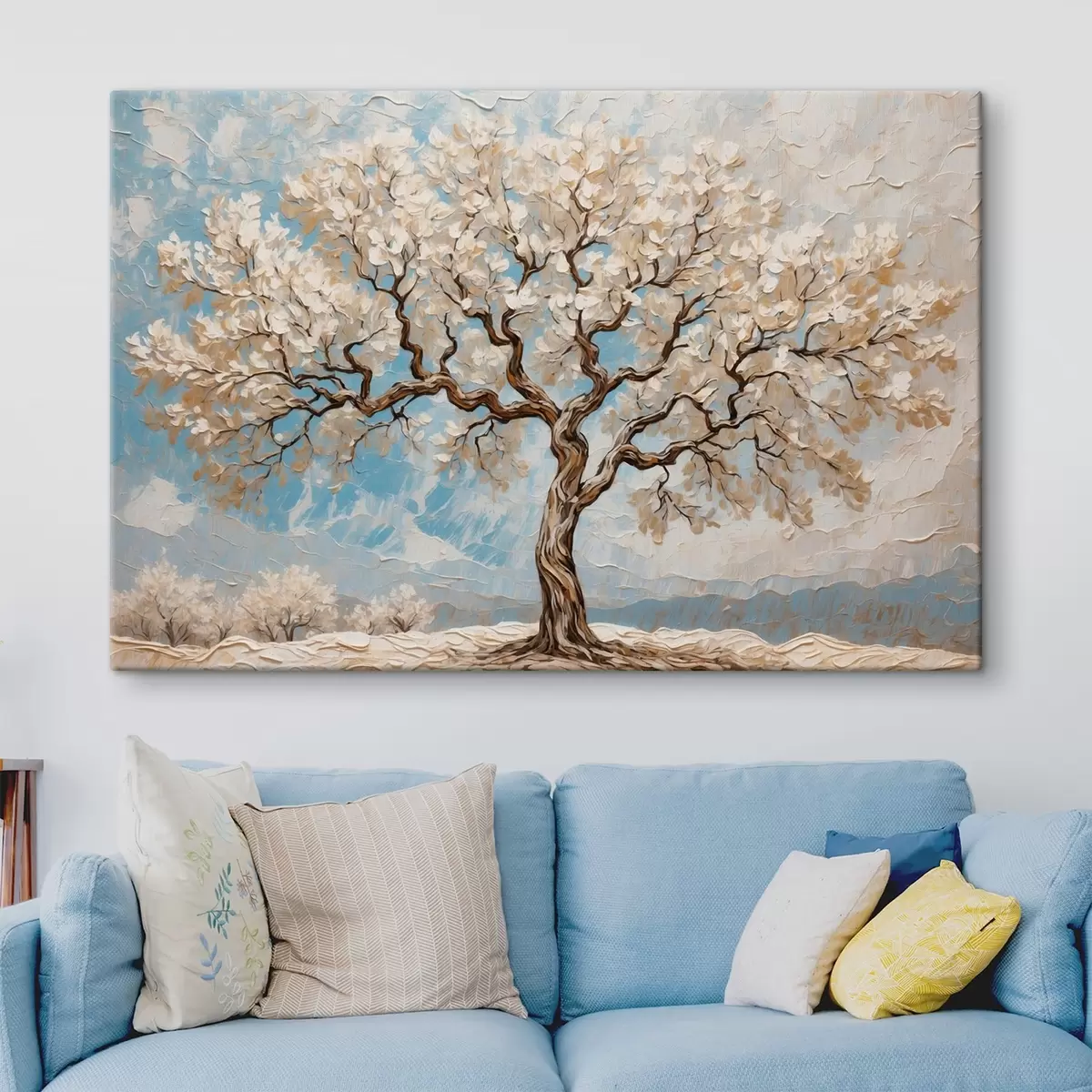 Cuadros Árbol blanco sobre fondo blanco y azul Nr s42275