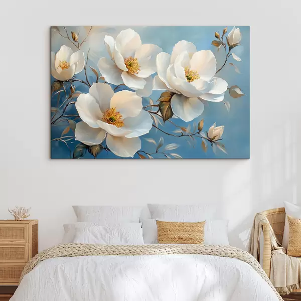 Cuadros Grandes flores blancas sobre fondo azul Nr s42321