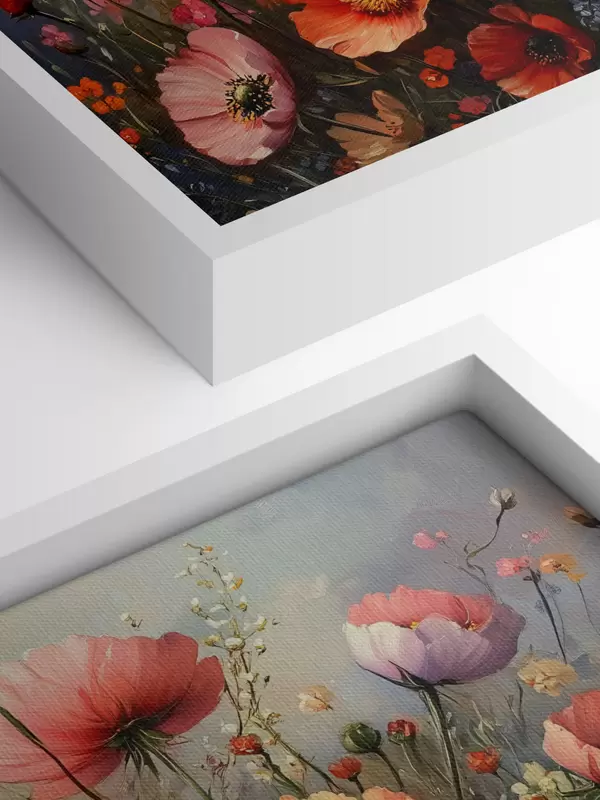 Hay tres tipos de material disponibles para pedidos: Lienzo Económico - material denso y duradero para impresión digital, idéntico al lienzo de pintor, superficie impermeable, reproducción realista de los detalles, material de grano medio. Lienzo Premium - la textura se asemeja a la de un lienzo de pintor (pequeños hilos entrelazados). Reproducción suave y detallada de la imagen sobre una superficie mate. Eco-Premium - tejido 100% algodón de alta calidad. Gracias a las fibras naturales de algodón, el material es duradero y resistente al desgaste. Excelente reproducción del color y el detalle.