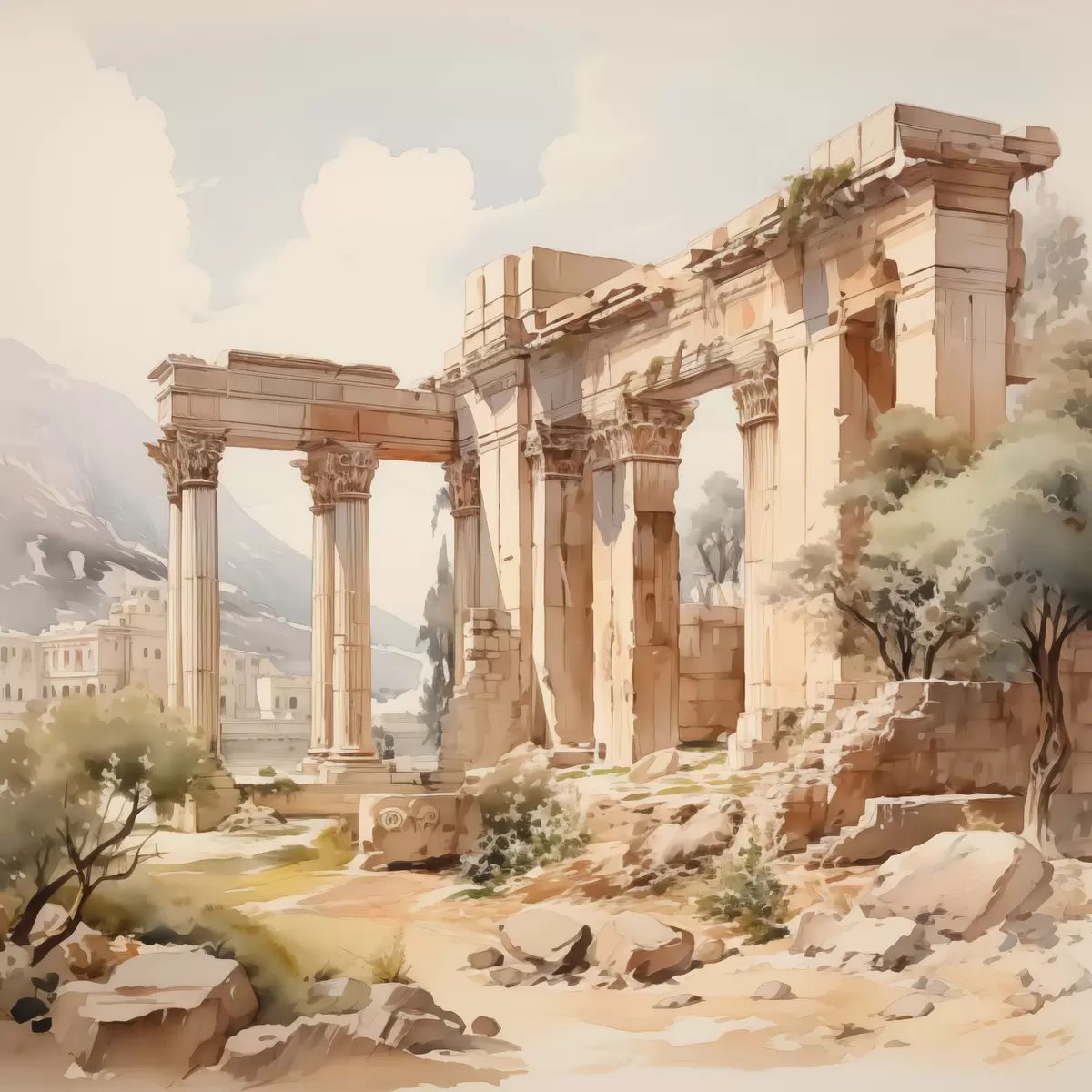 Cuadros Ruinas antiguas imitación acuarela Nr s42366