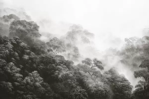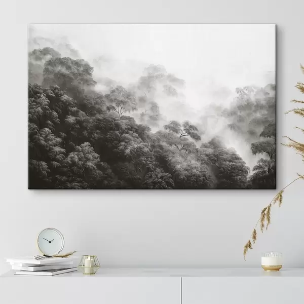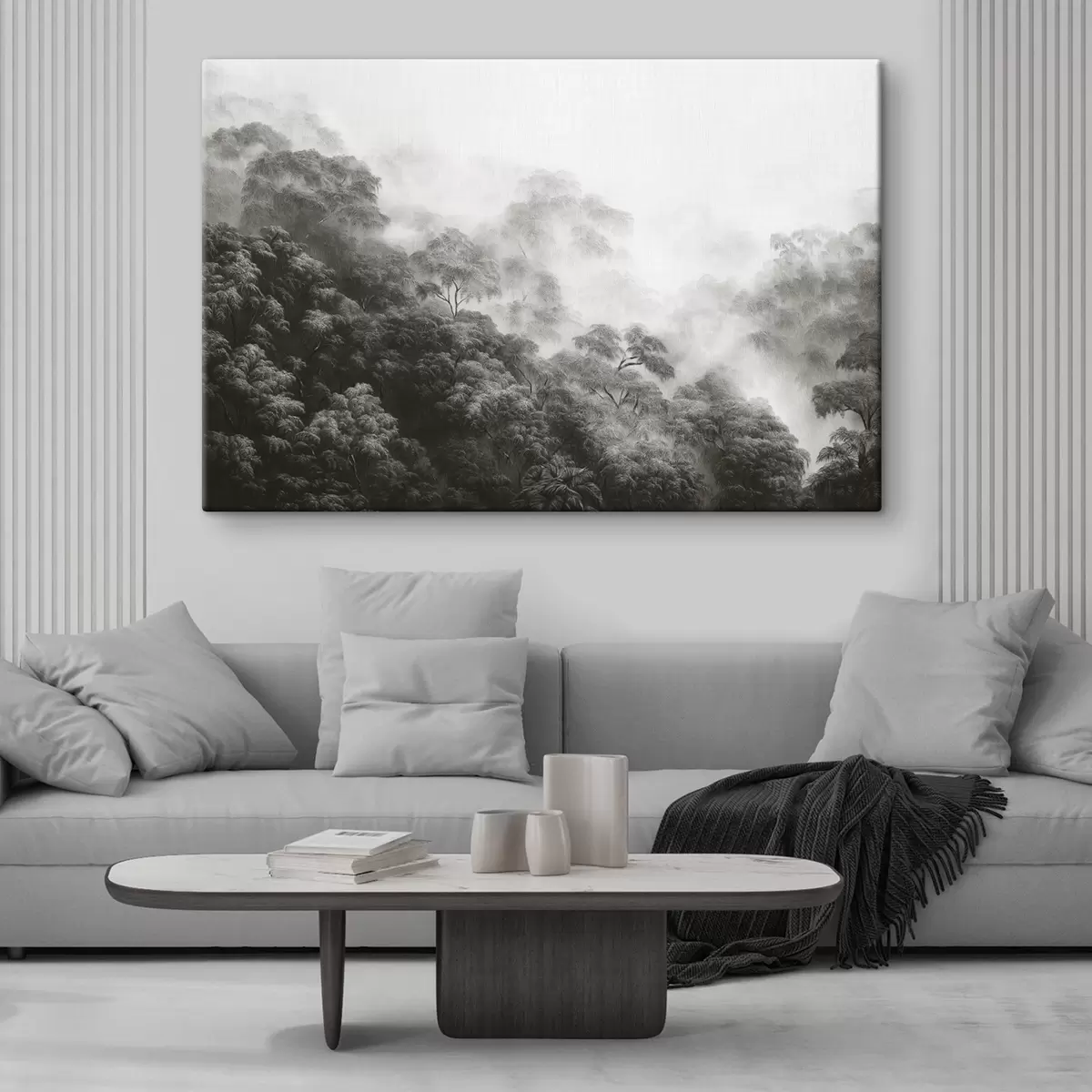 Cuadros Bosque tropical en la niebla, palmeras, colores grises Nr s42371v1
