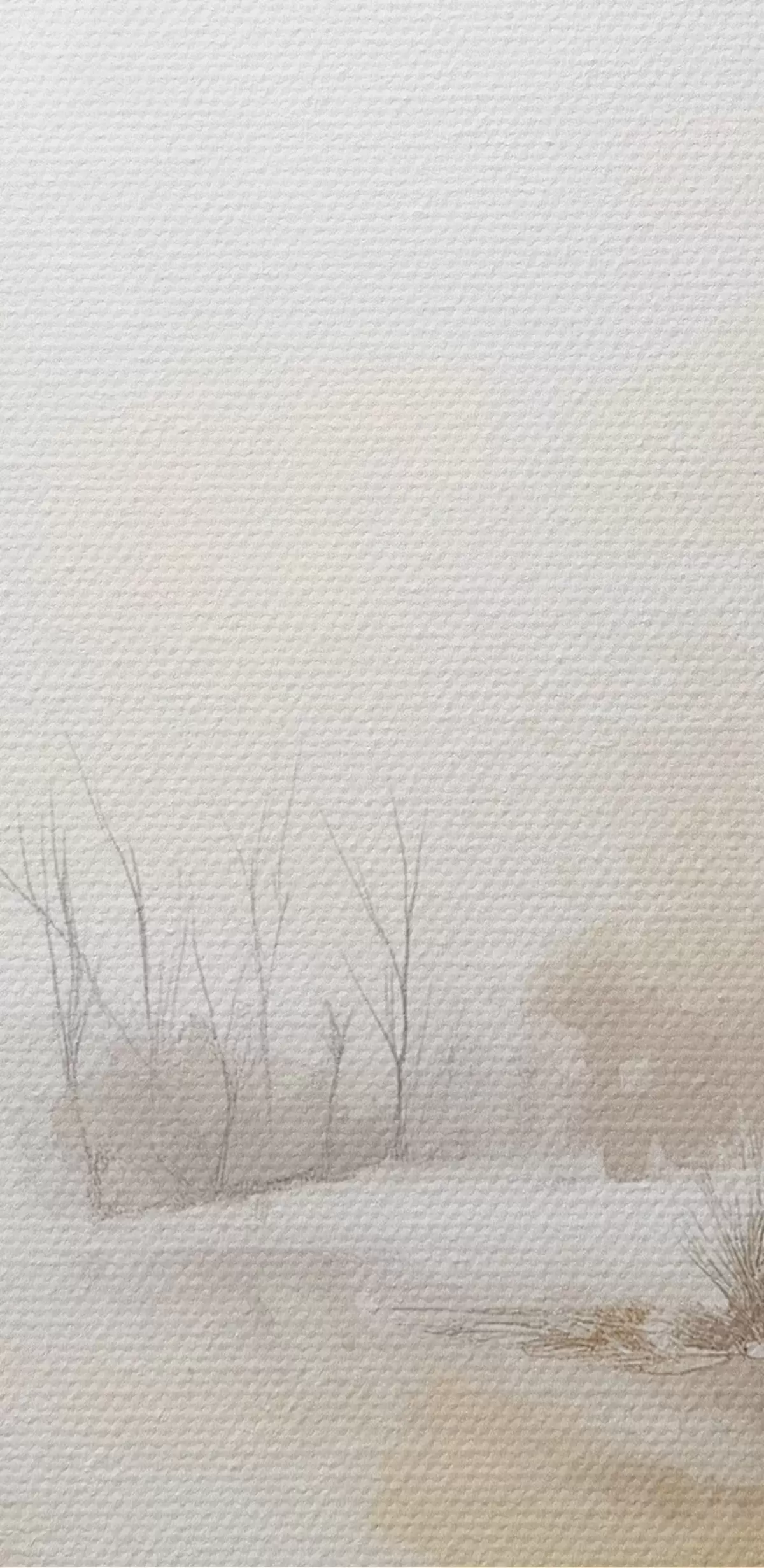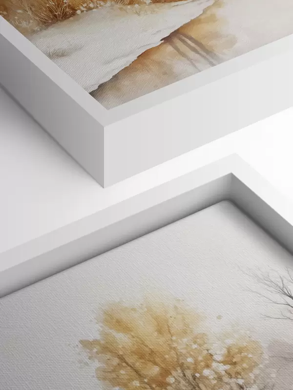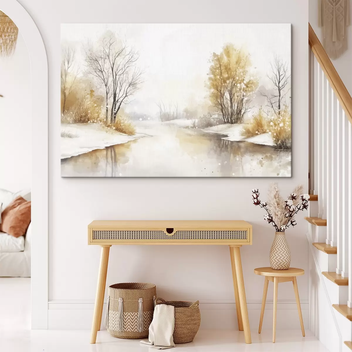 Cuadros Paisaje invernal, río y árboles, estilo acuarela, colores beige Nr s42376