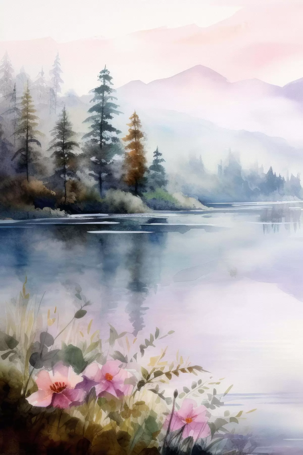 Cuadros Bosque con niebla sobre el fondo de un lago Nr s42384