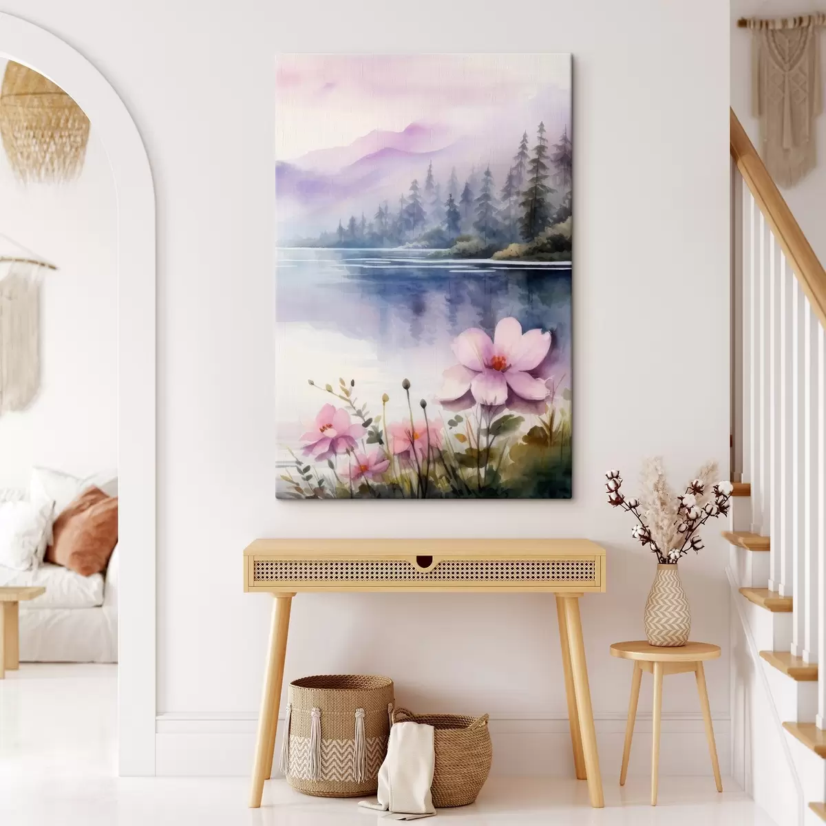 Cuadros Flores rosas sobre el fondo de un lago en las montañas Nr s42393