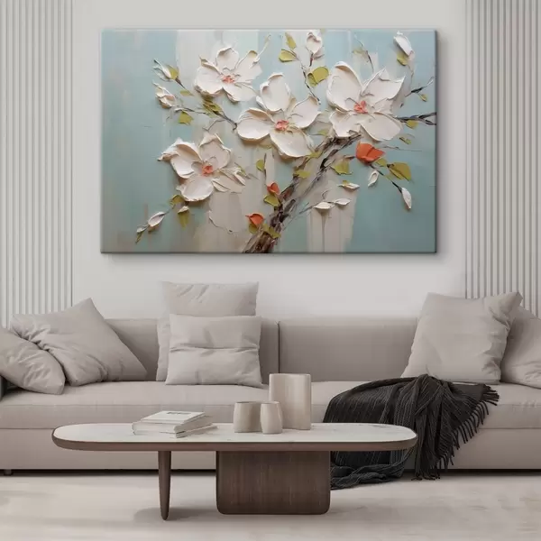 Cuadros Flores blancas imitación trazos de pintura Nr s42417