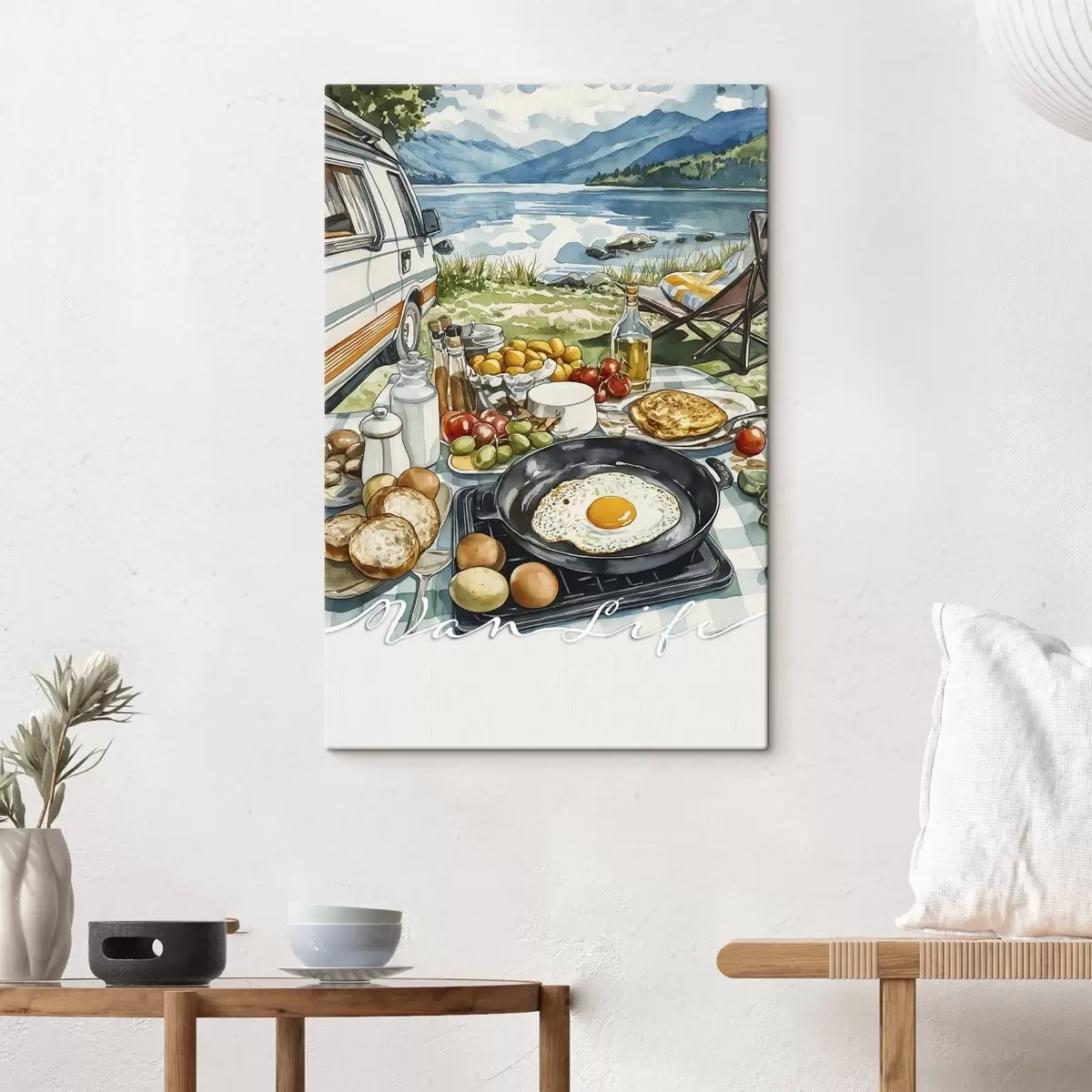Cuadros Precioso desayuno estilo acuarela, vida de furgoneta, camping, montañas Nr s42429