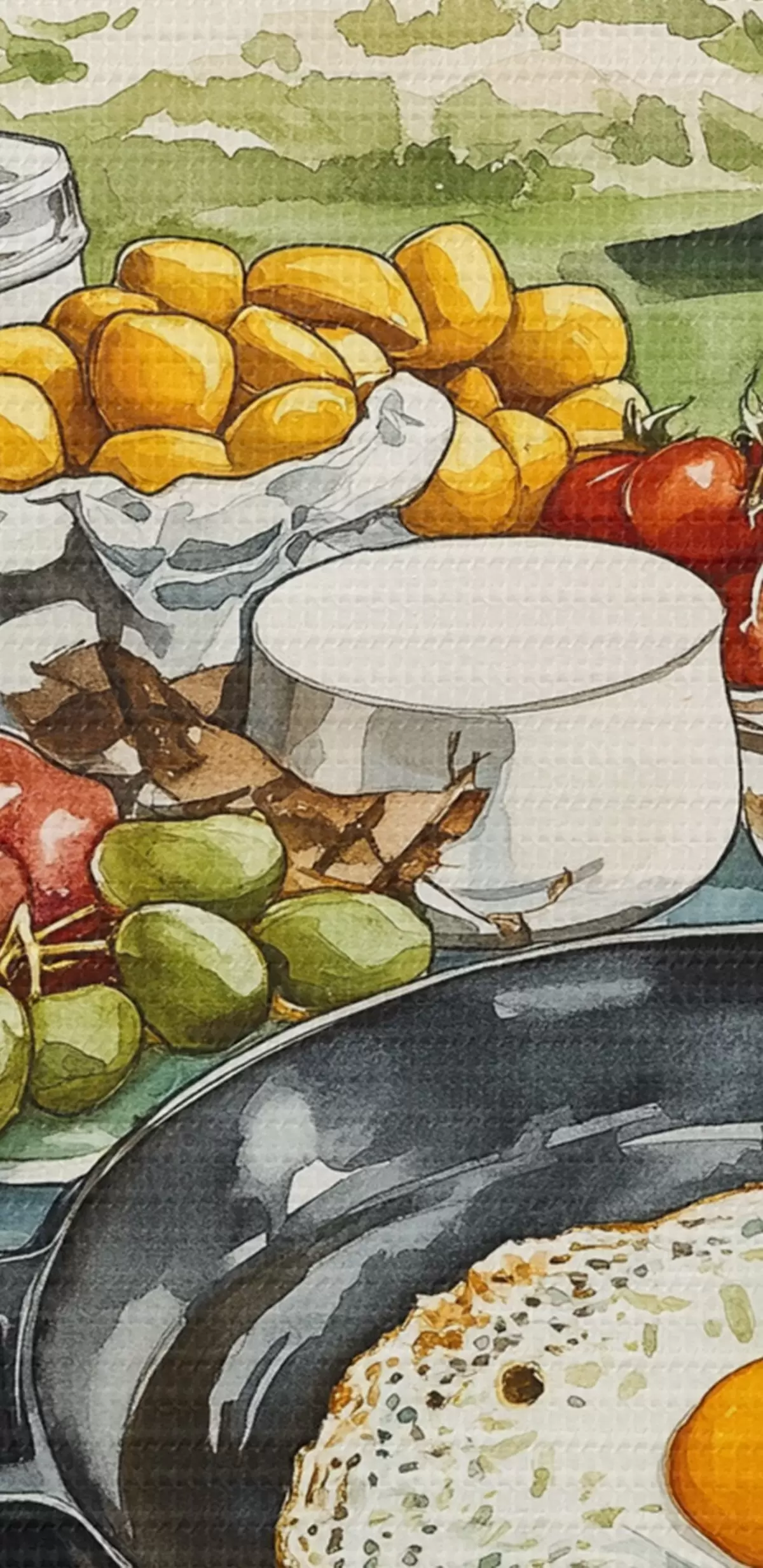 Cuadros Precioso desayuno estilo acuarela, vida de furgoneta, camping, montañas Nr s42429