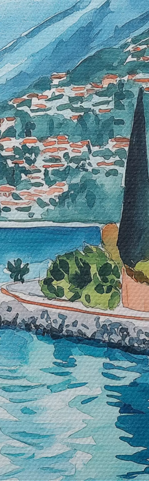 Cuadros Lago Como, Italia, estilo acuarela, pizza, cócteles, casco antiguo, montañas Nr s42437