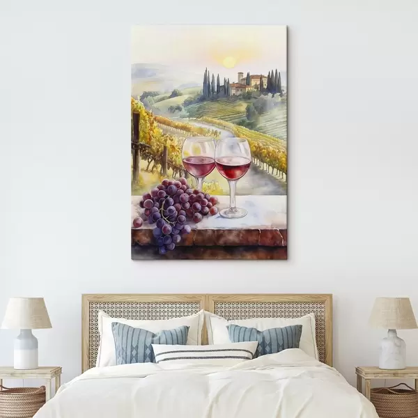 Cuadros Puesta de sol en Toscana, bodega, arquitectura antigua, estilo acuarela, Italia Nr s42446