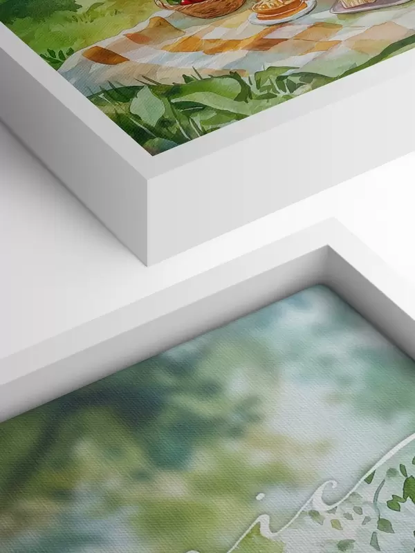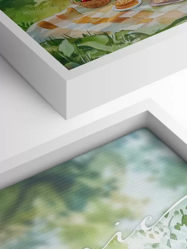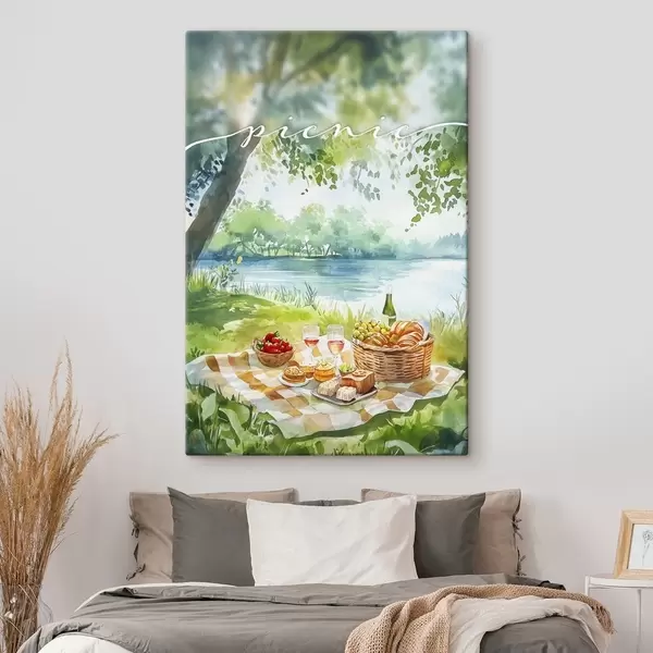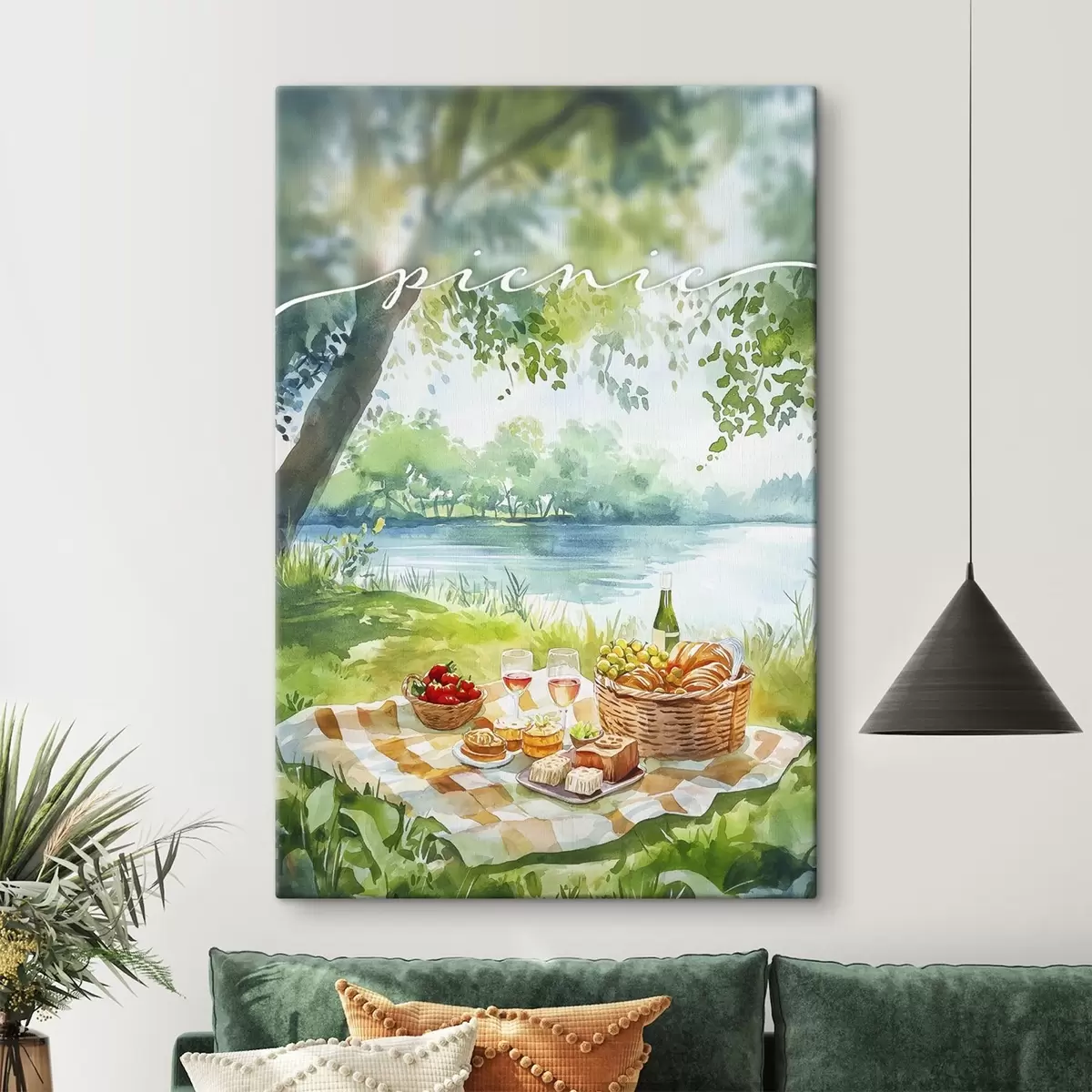 Cuadros Estética de picnic, naturaleza de verano, lago, romántico, estilo acuarela Nr s42450