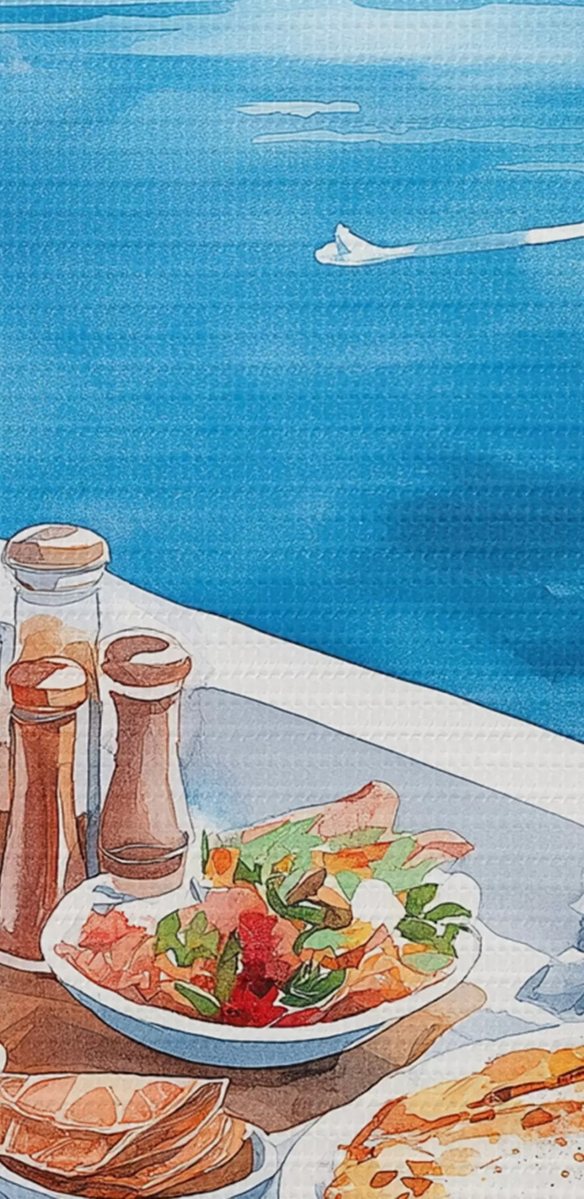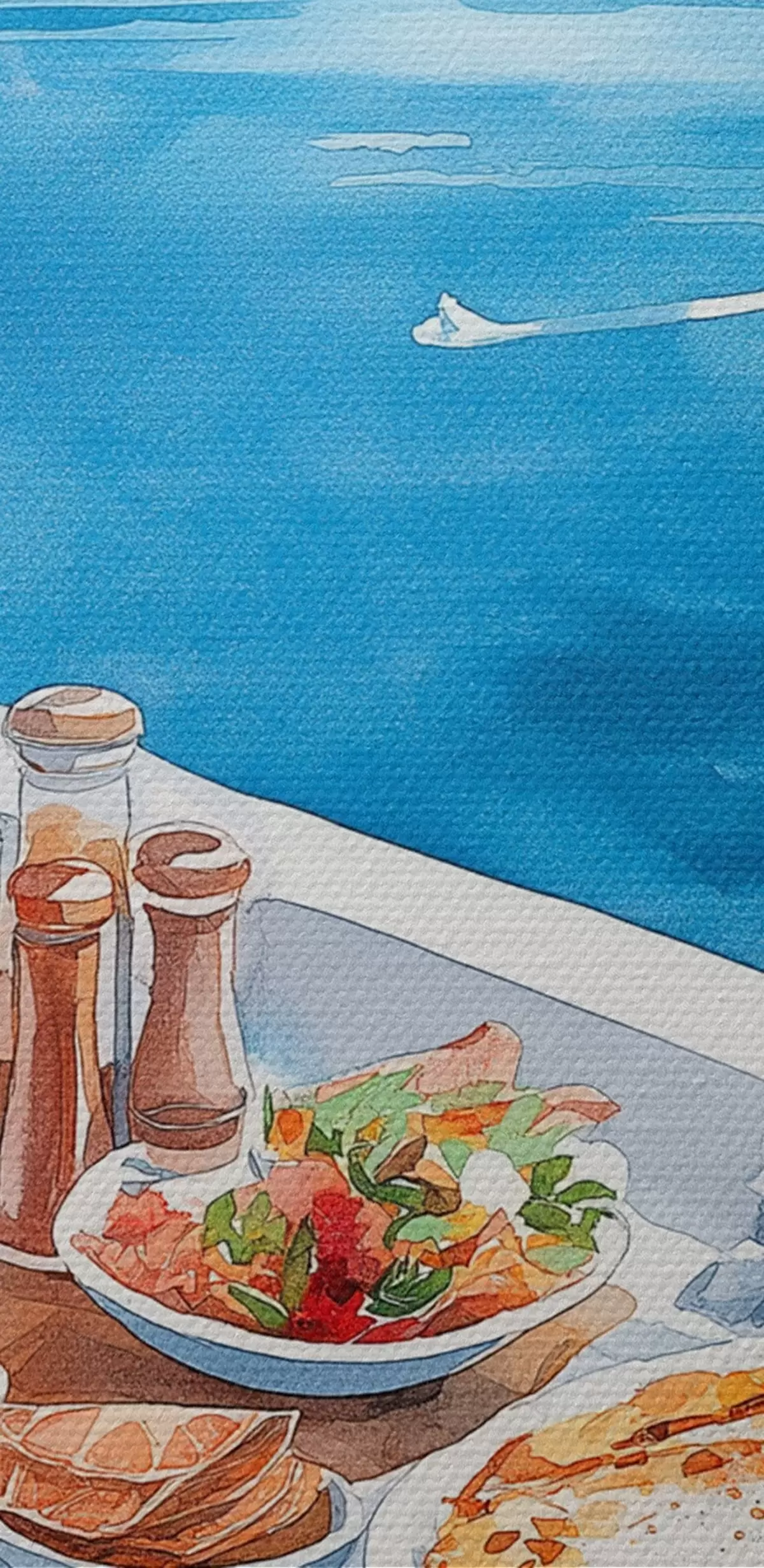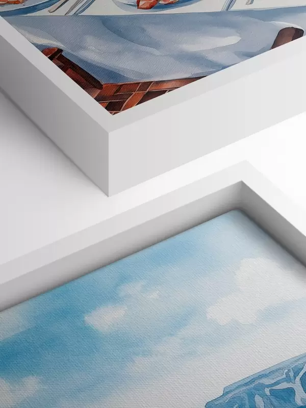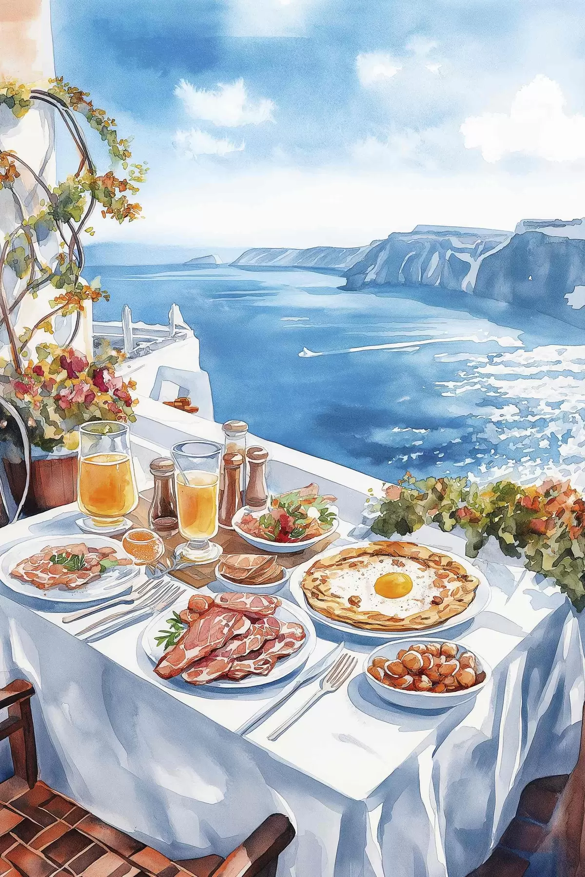 Cuadros Hermoso desayuno romántico en Grecia, mar, estilo acuarela Nr s42455