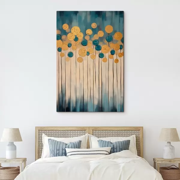 Cuadros Abstracción decorativa con elementos redondos sobre fondo azul y beige Nr s42476