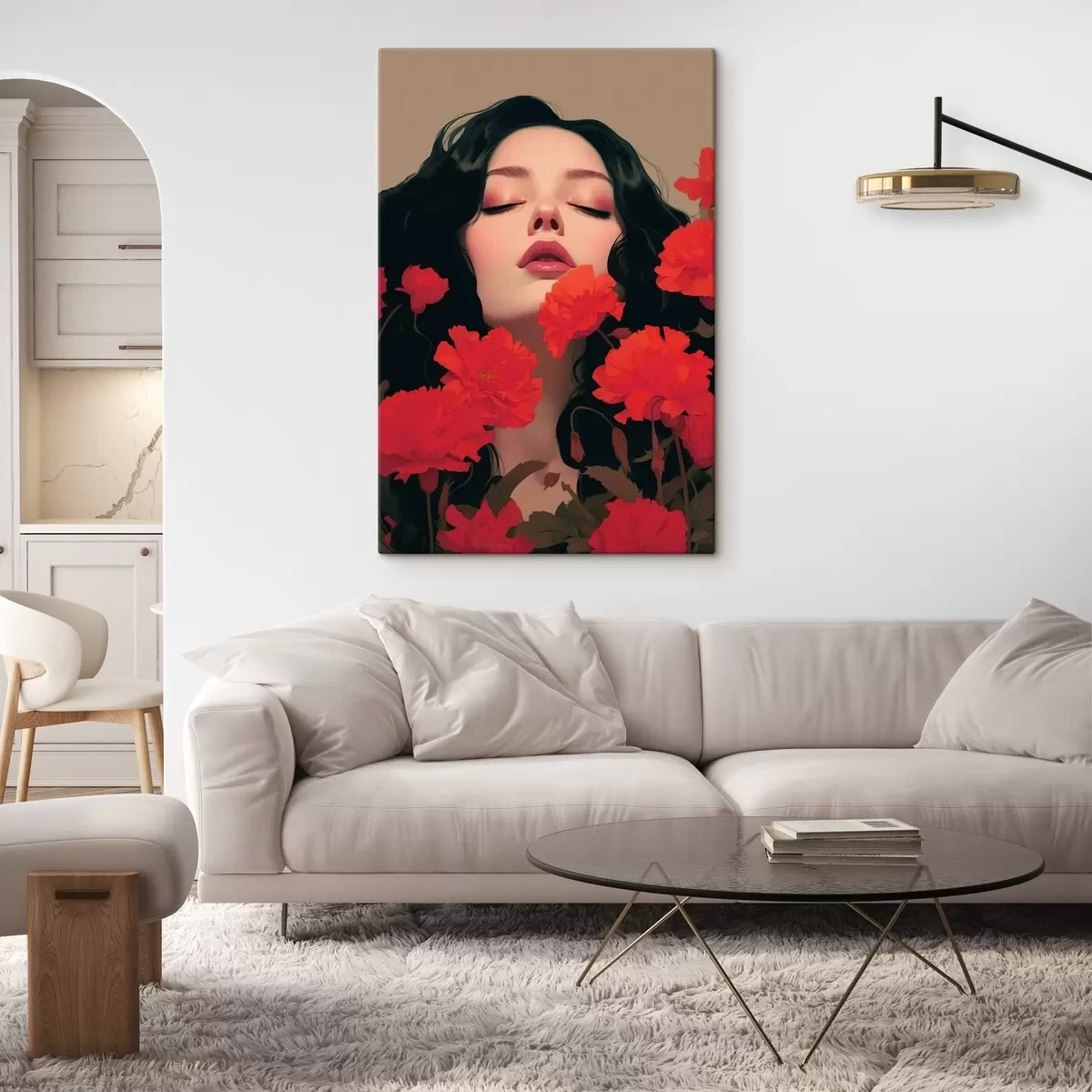 Cuadros Retrato femenino entre flores rojas Nr s42478