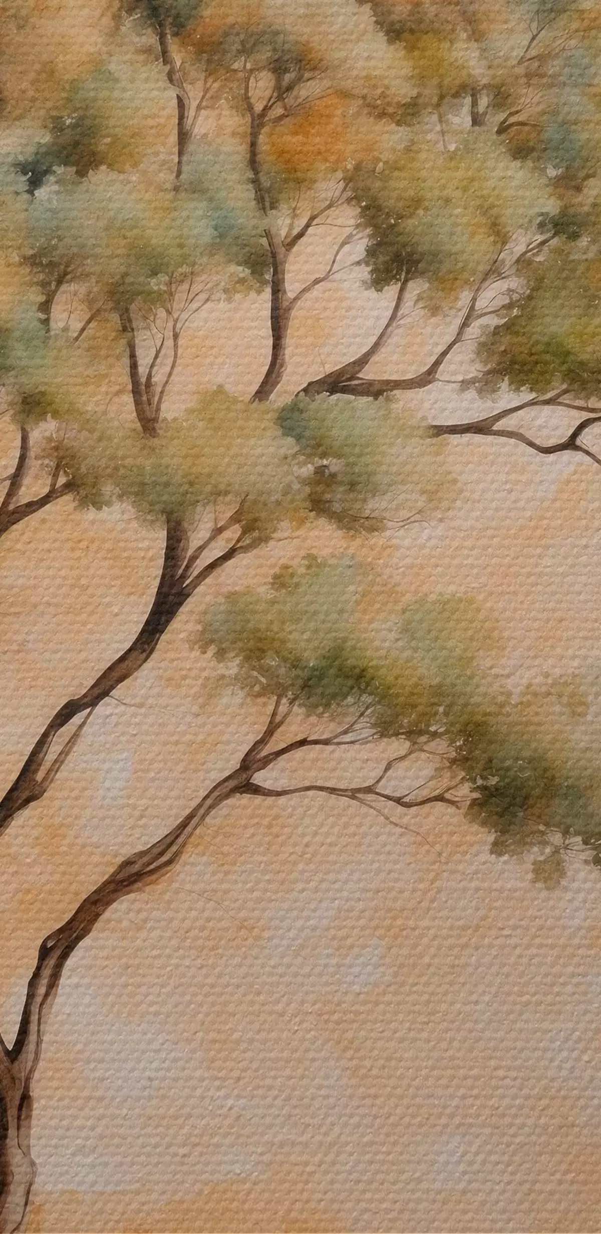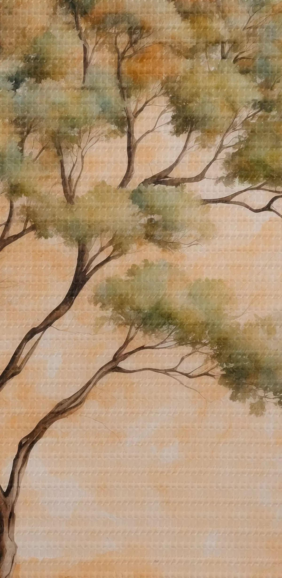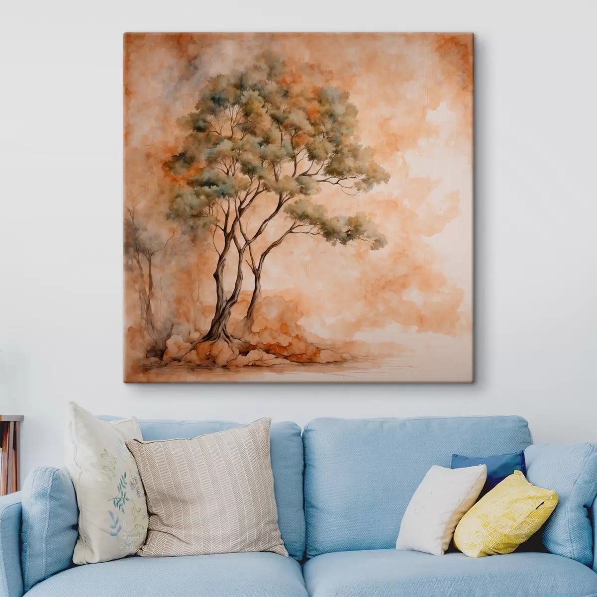 Cuadros Árbol sobre fondo naranja y blanco en estilo de pintura de acuarela Nr s42514