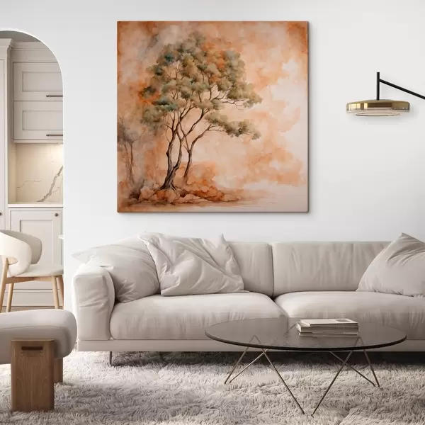Cuadros Árbol sobre fondo naranja y blanco en estilo de pintura de acuarela Nr s42514
