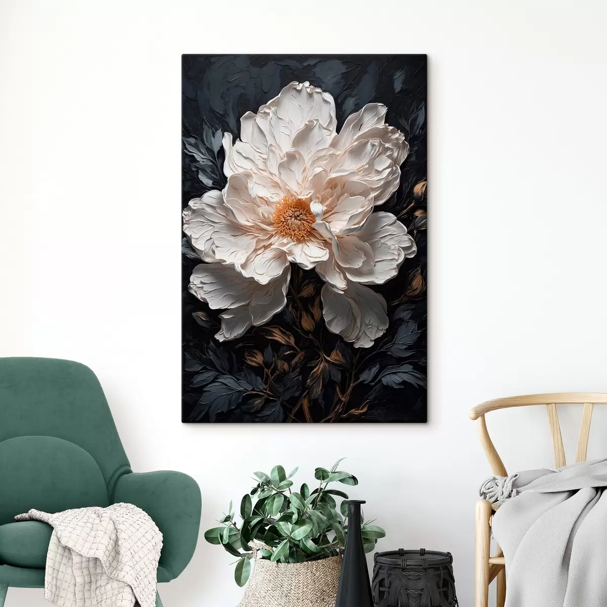 murales de pared Flor blanca sobre fondo negro al óleo s42544