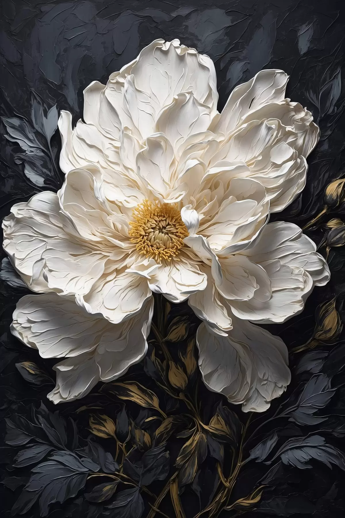 Cuadros Flor blanca sobre fondo negro al óleo Nr s42544