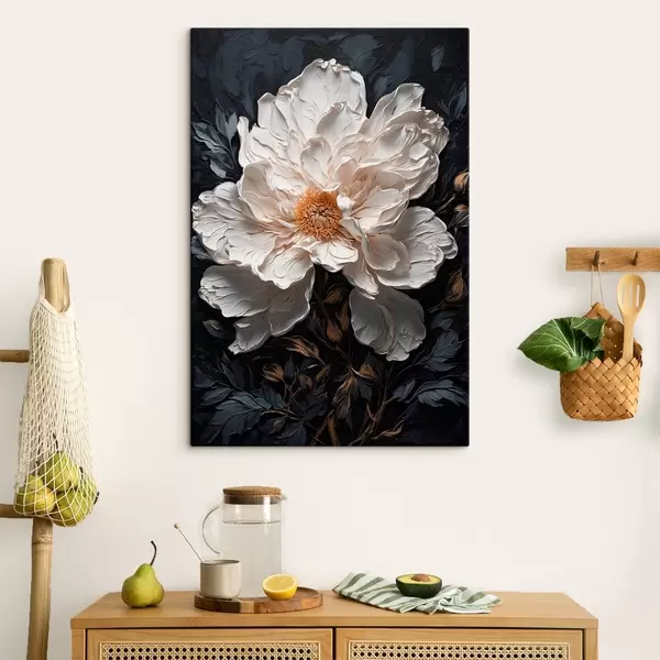 murales de pared Flor blanca sobre fondo negro al óleo s42544
