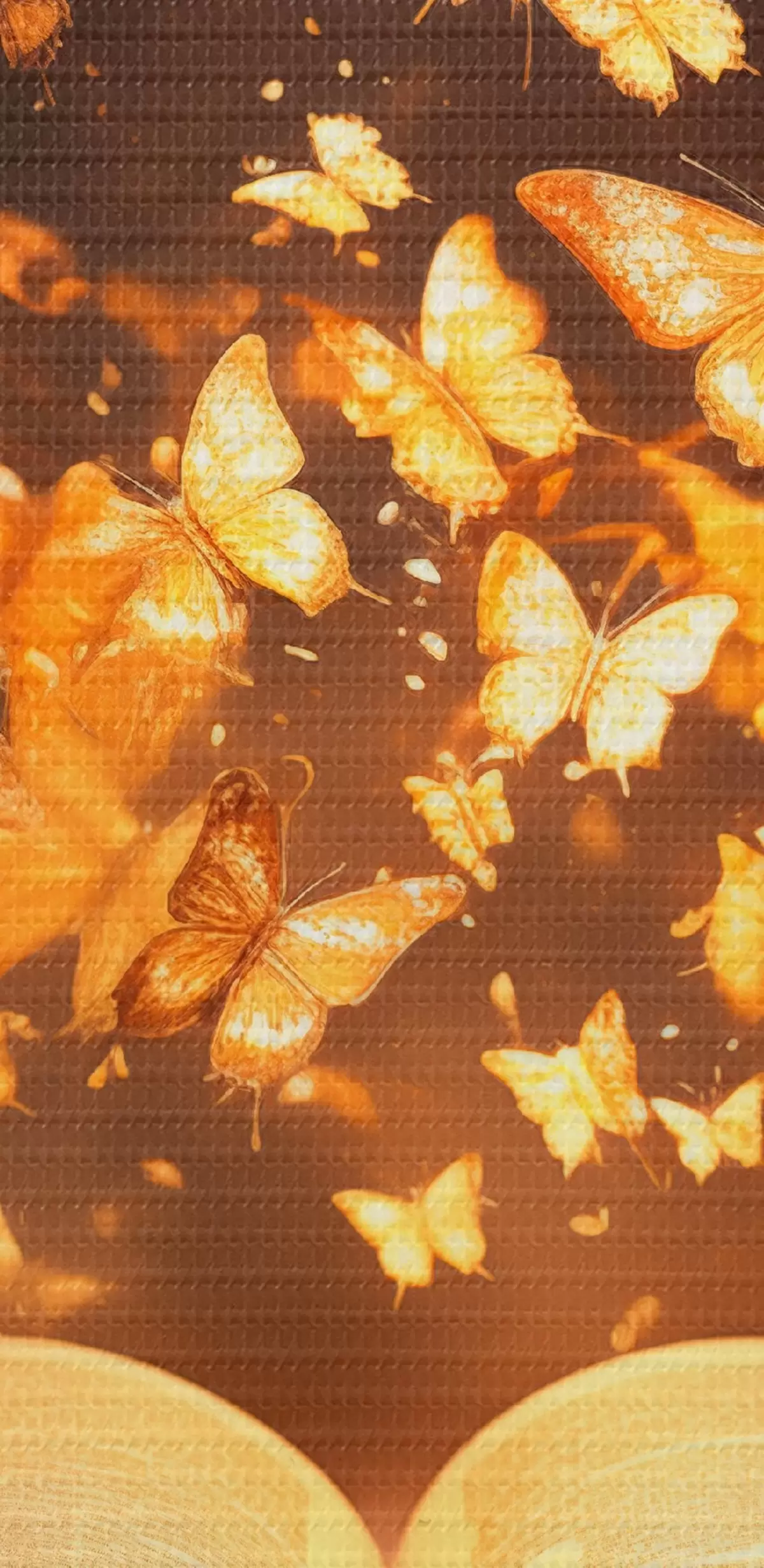 Cuadros Un libro abierto del que surgen mariposas luminosas que brillan en rayos de luz en un bosque oscuro y mágico. Nr s42573