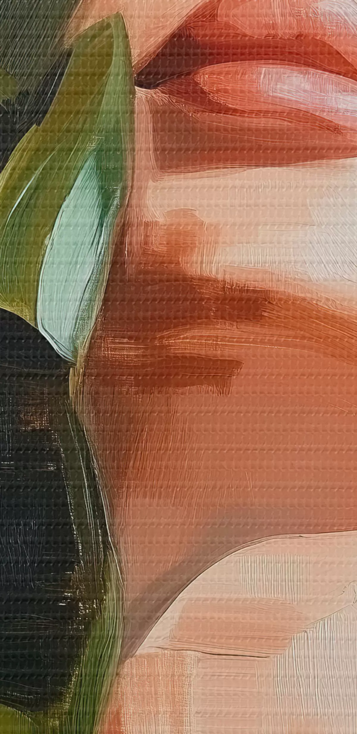 murales de pared Retrato de mujer con una hoja de monstera con pinceladas de imitación s42597