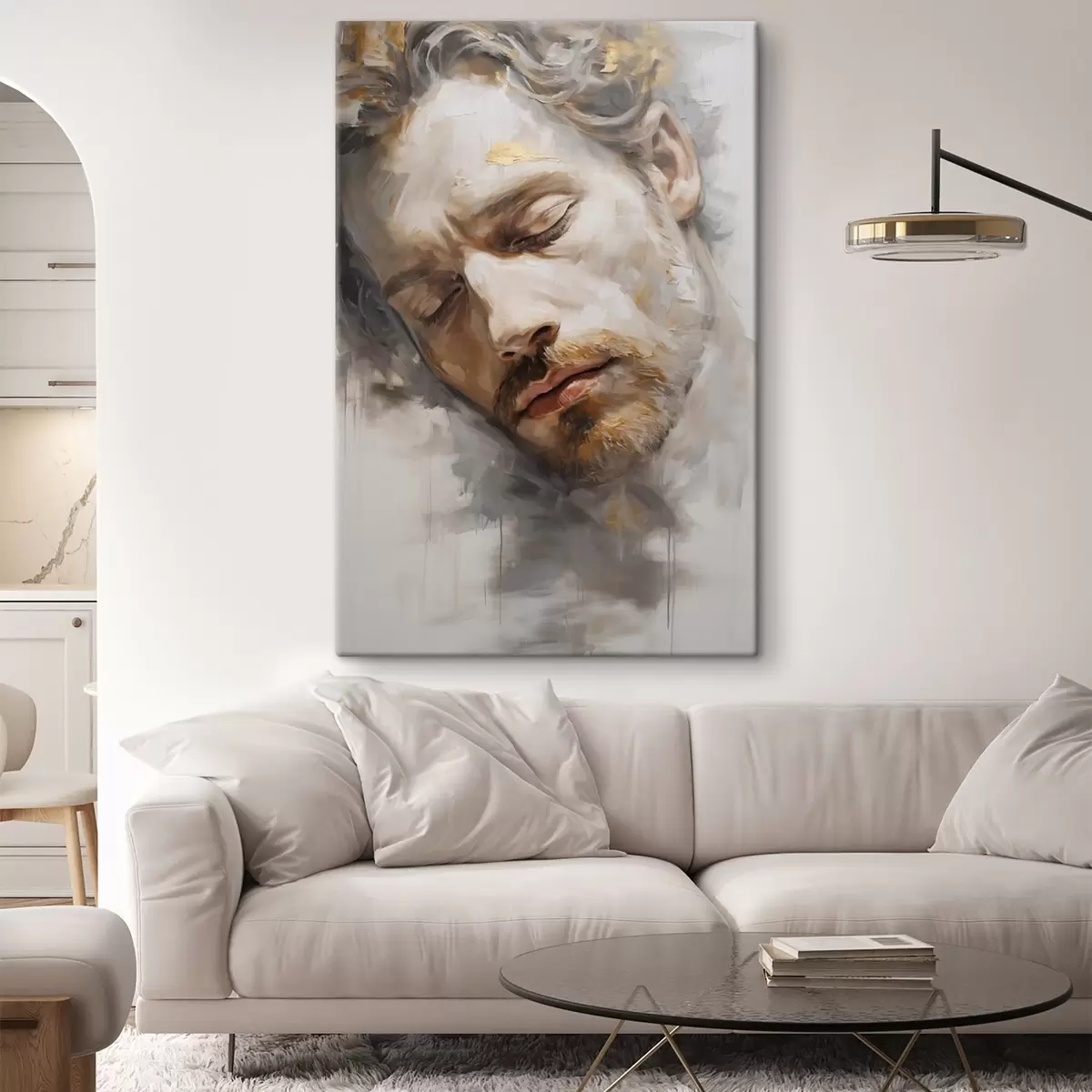 Cuadros Retrato abstracto de un hombre con los ojos cerrados, realizado en suaves tonos cálidos con pinceladas suaves que evocan una sensación de calma. Nr s42621