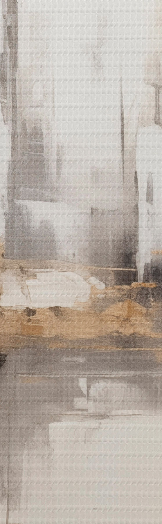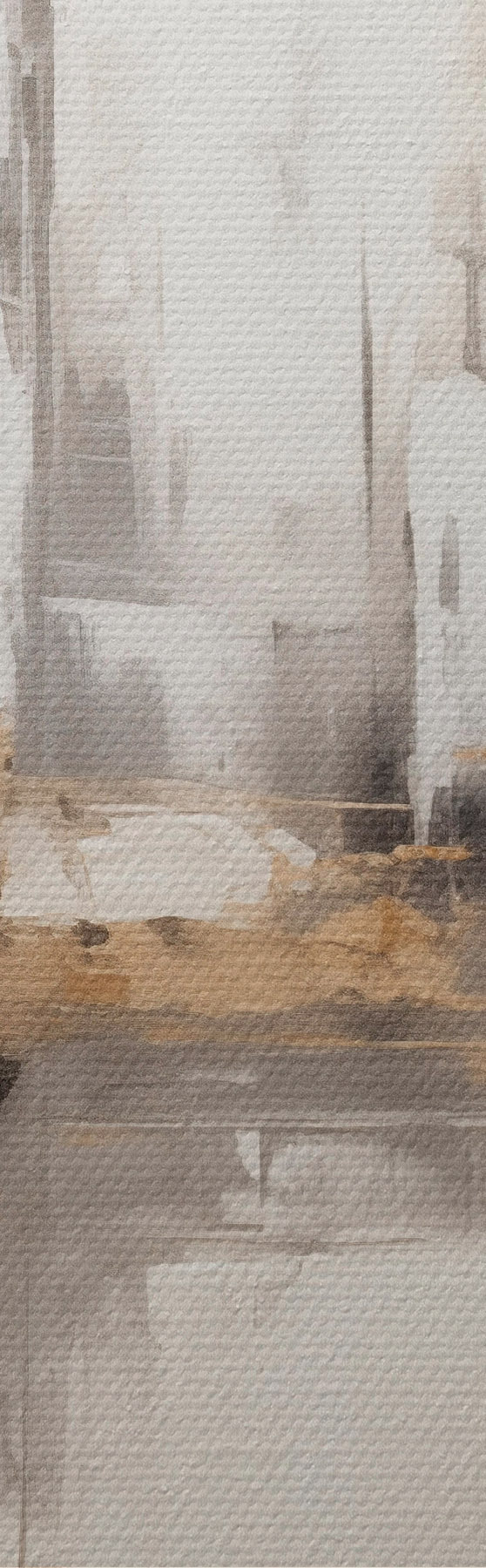 Cuadros Un paisaje urbano abstracto con reflejos de edificios en el agua, creado en tonos neutros con acentos de tonos cálidos. Nr s42628