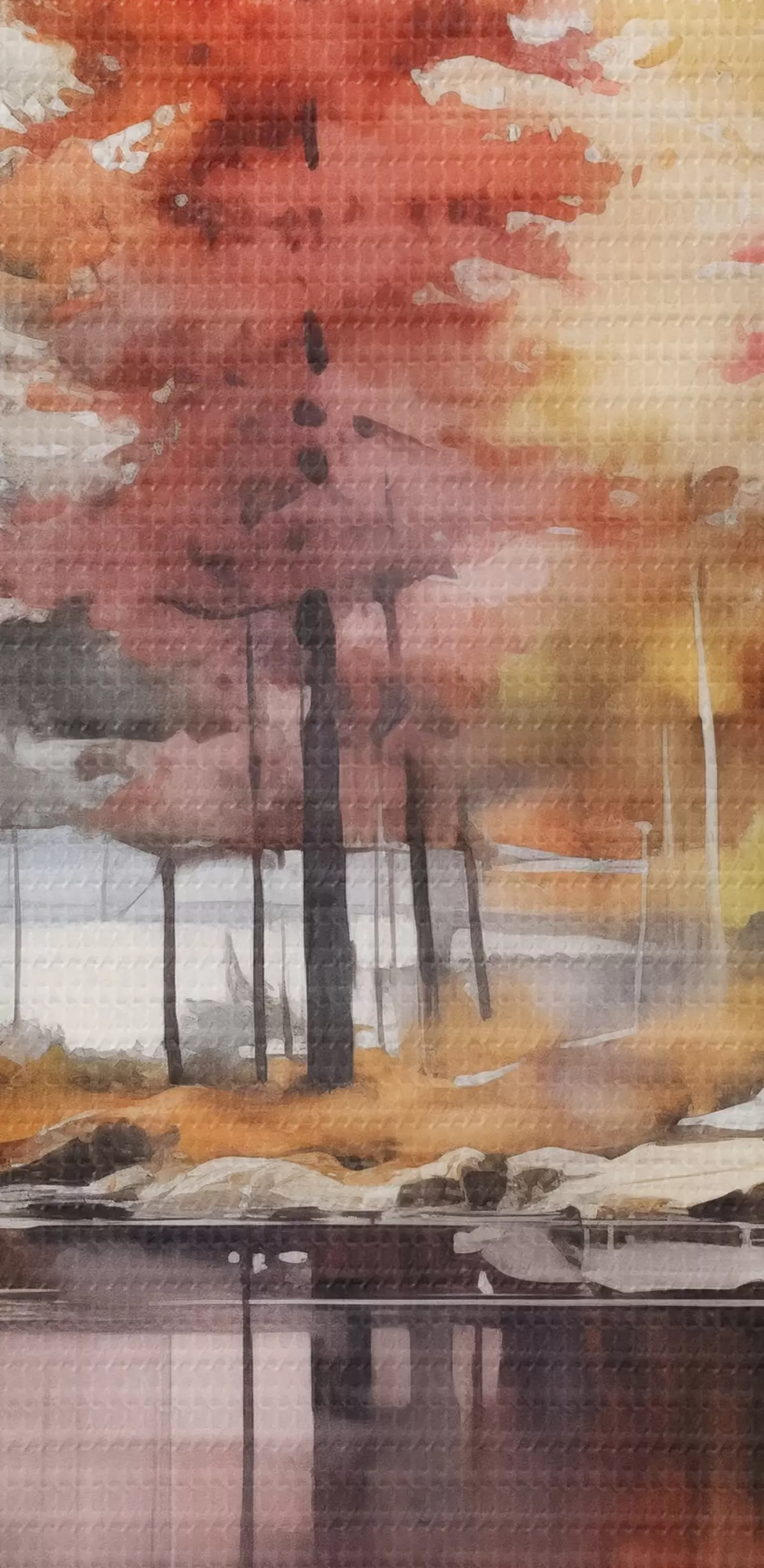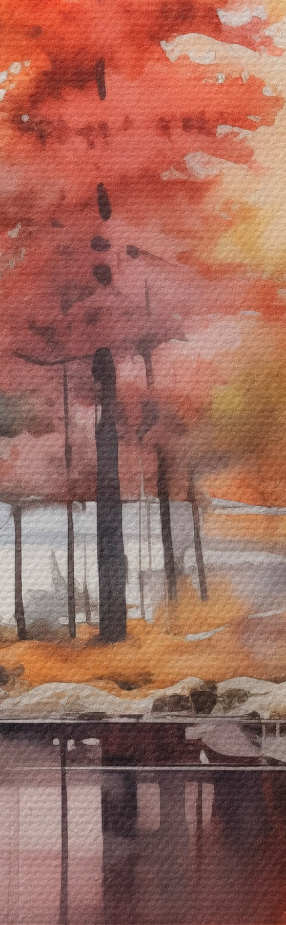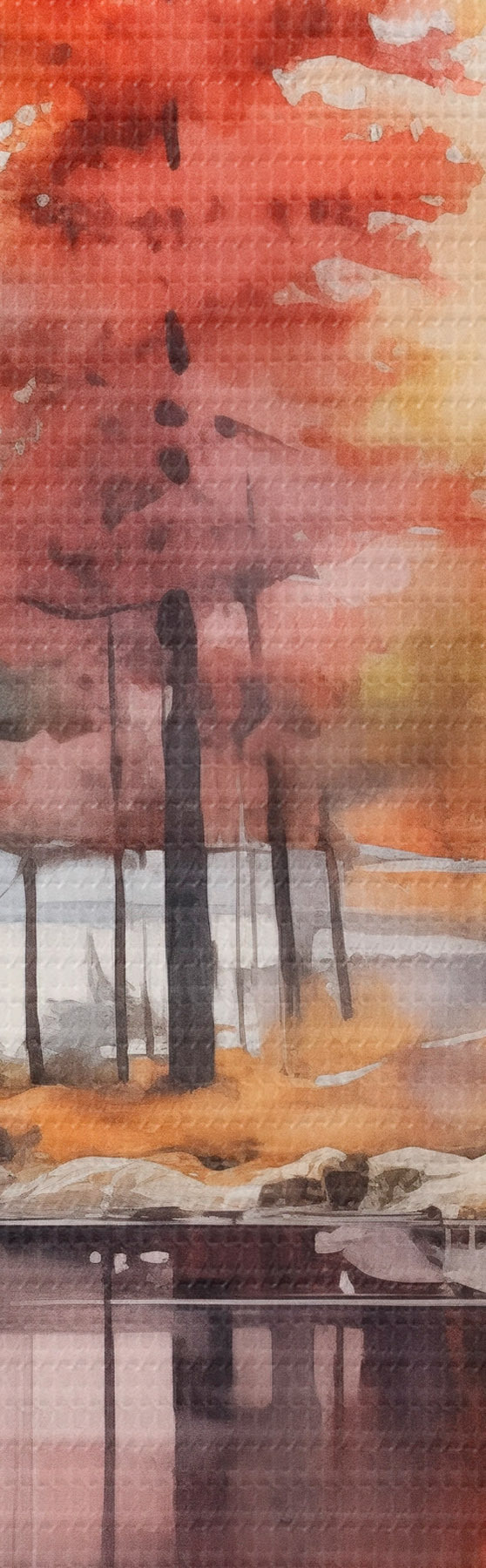Cuadros Paisaje de acuarela con un lago rodeado de árboles en vibrantes colores otoñales Nr s42727