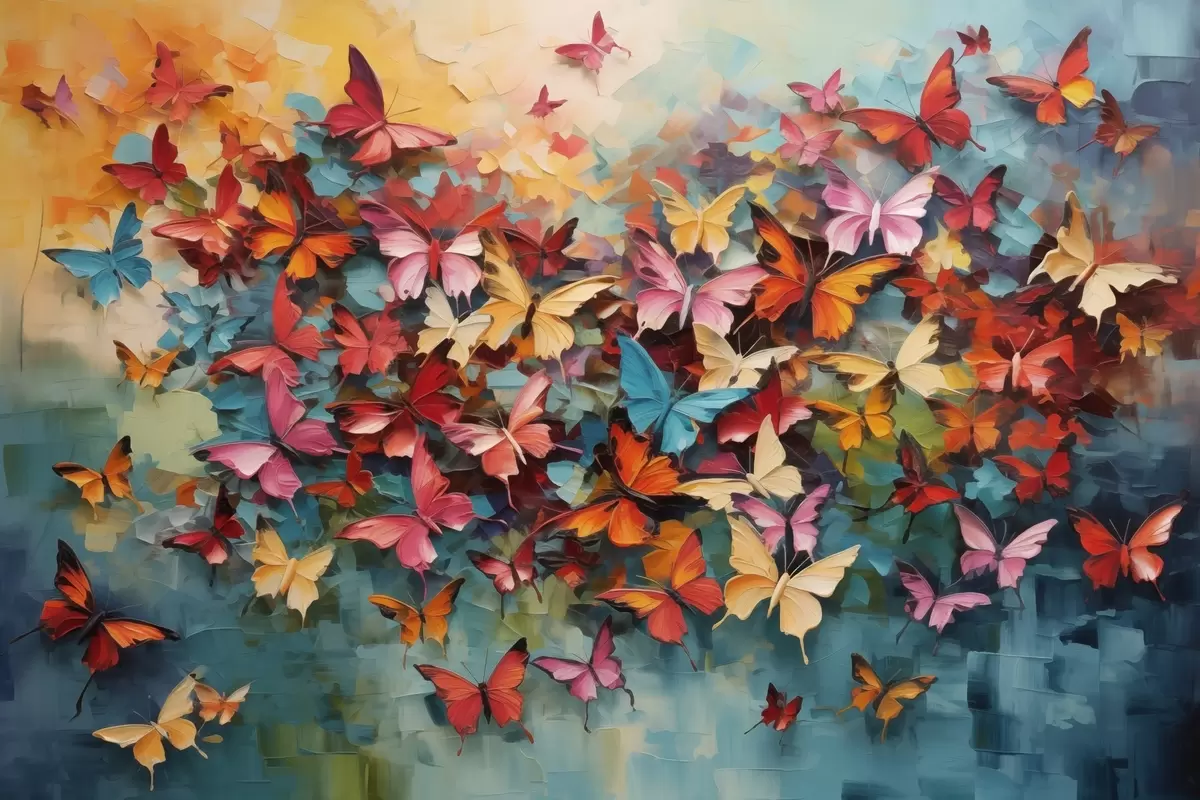 Cuadros Una vibrante variedad de mariposas en varios colores imitación de pintura al óleo Nr s42728