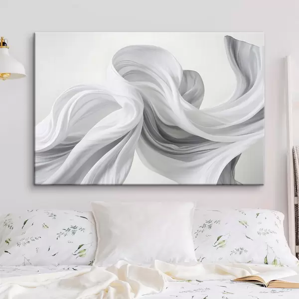 Cuadros Formas blancas y grises en forma de tejido que se arremolinan y entrelazan sobre un fondo claro Nr s42732
