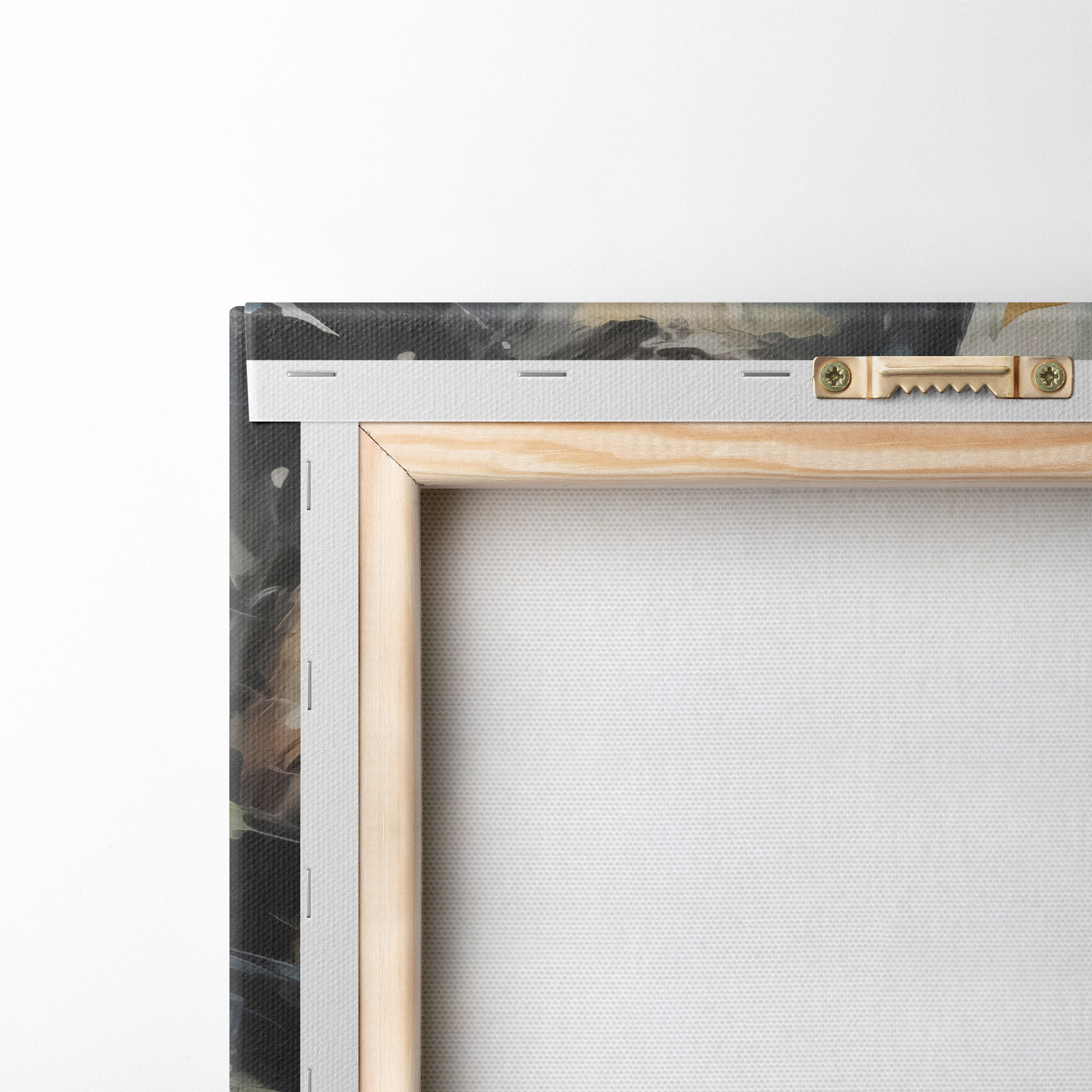 Vendemos cuadros en bastidor: se trata de un marco de madera sobre el que se extiende el lienzo. Este cuadro no necesita marco; puedes colgarlo directamente en la pared.