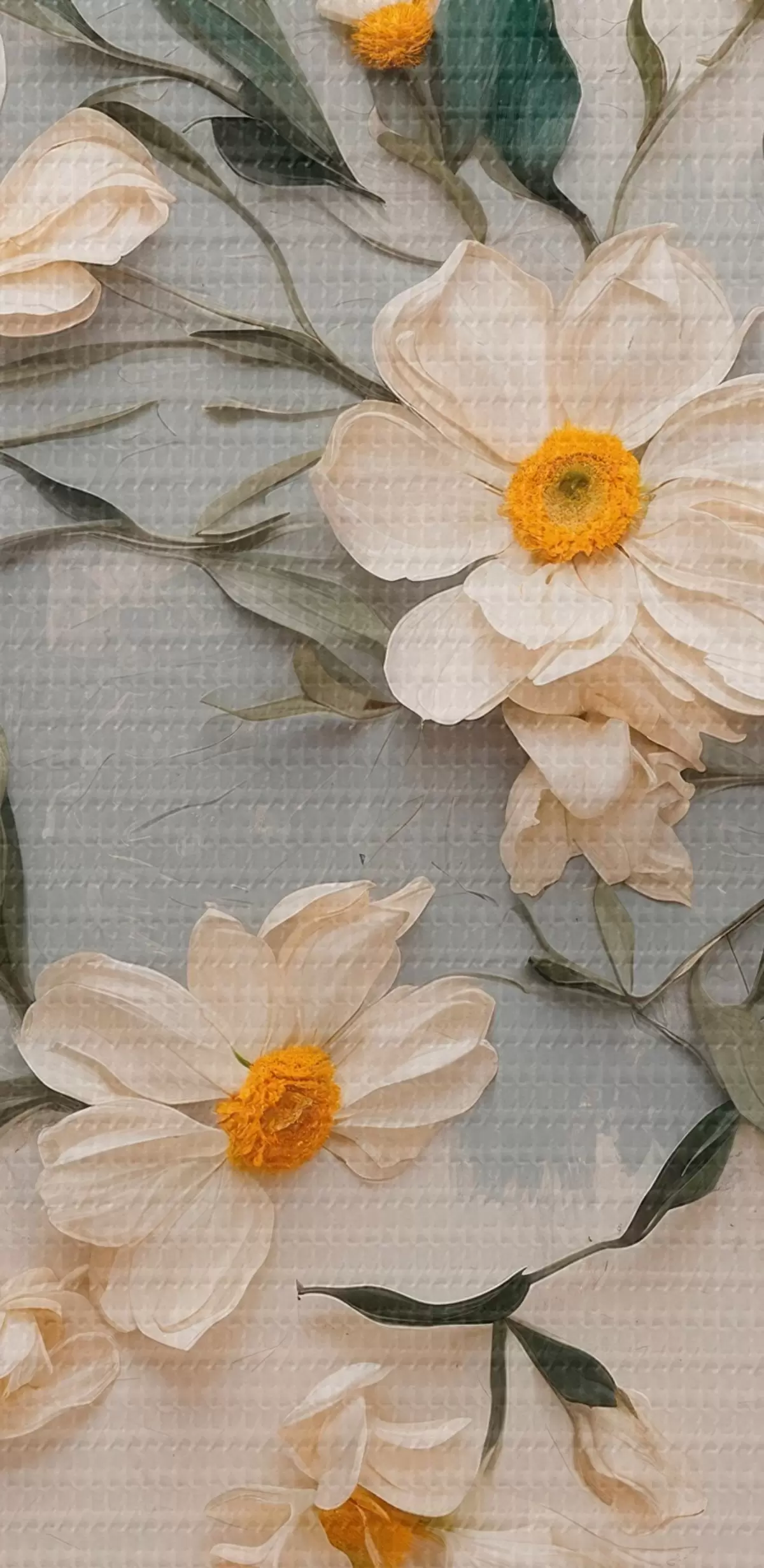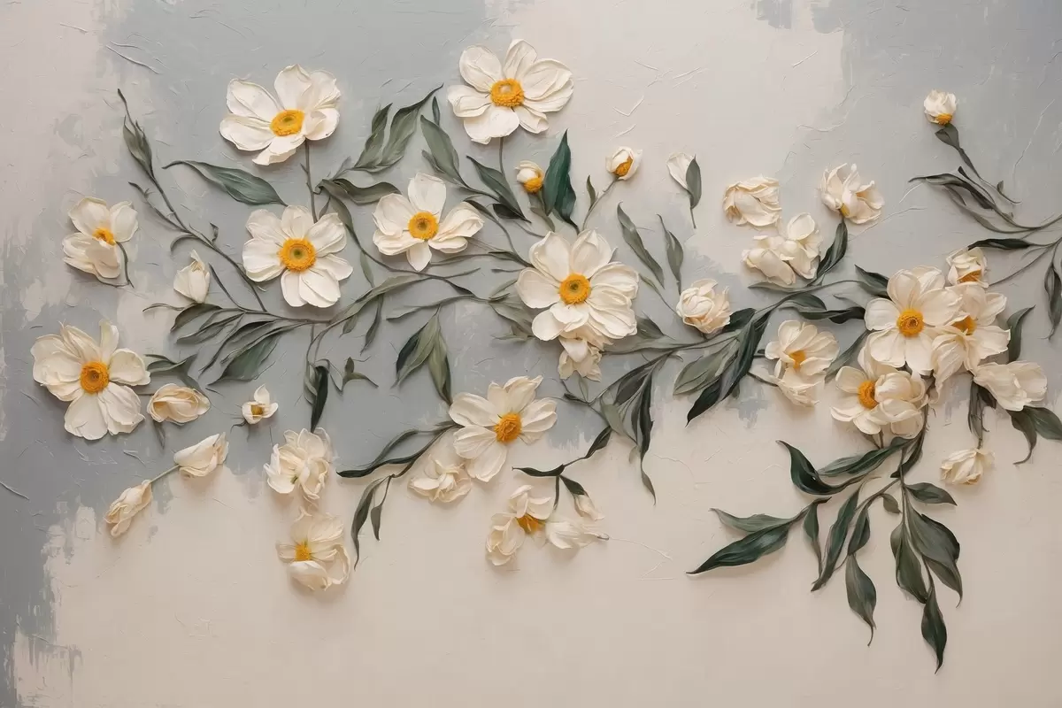 murales de pared Flores y hojas blancas sobre fondo blanco y gris s42764