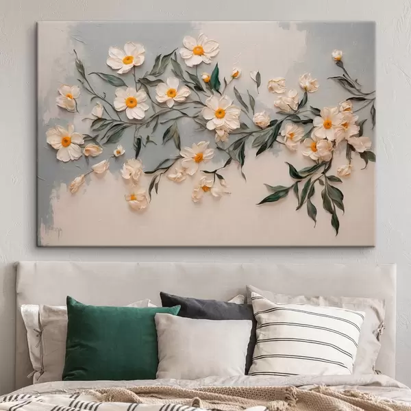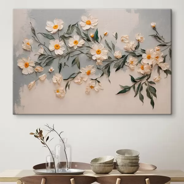 Cuadros Flores y hojas blancas sobre fondo blanco y gris Nr s42764