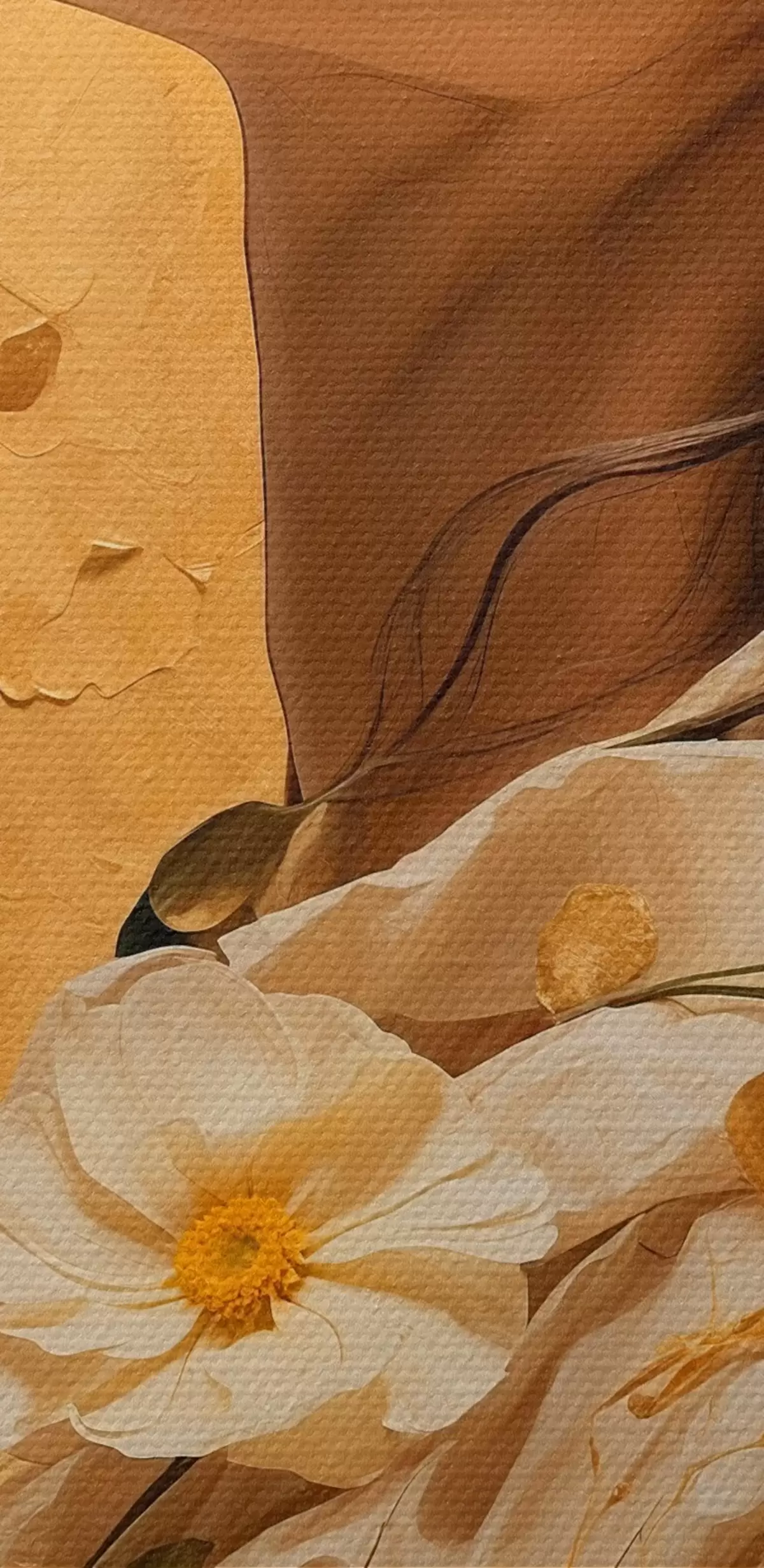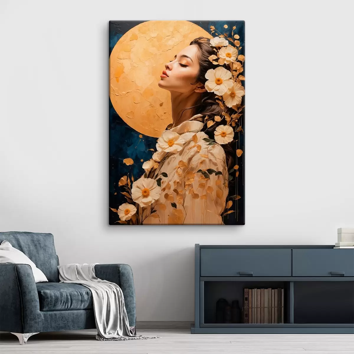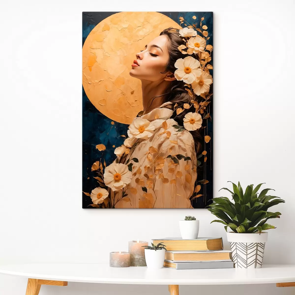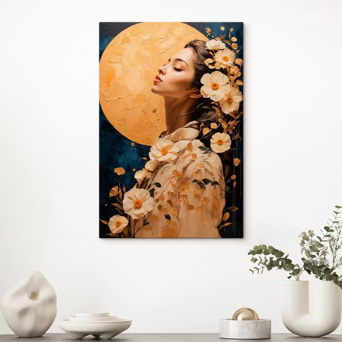 Cuadros Chica con flores sobre fondo de luna dorada Nr s42774