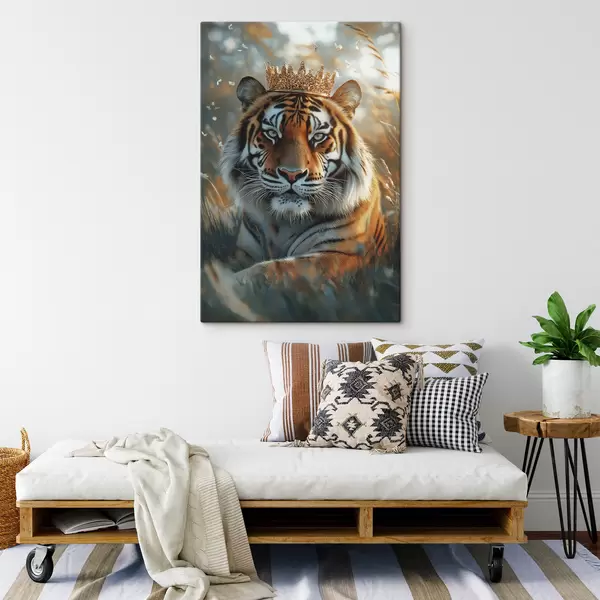 Cuadros Hermoso tigre con corona de oro, prado de verano, realismo Nr s42786