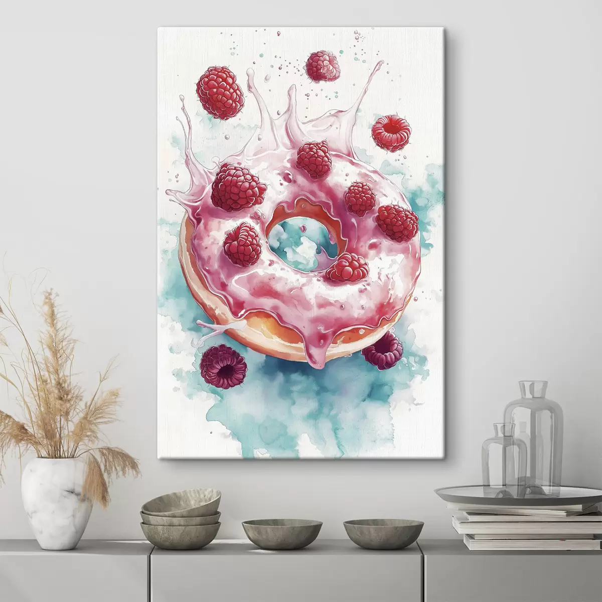 Cuadros Donat de acuarela con frambuesas, colores rosa y azul Nr s42787