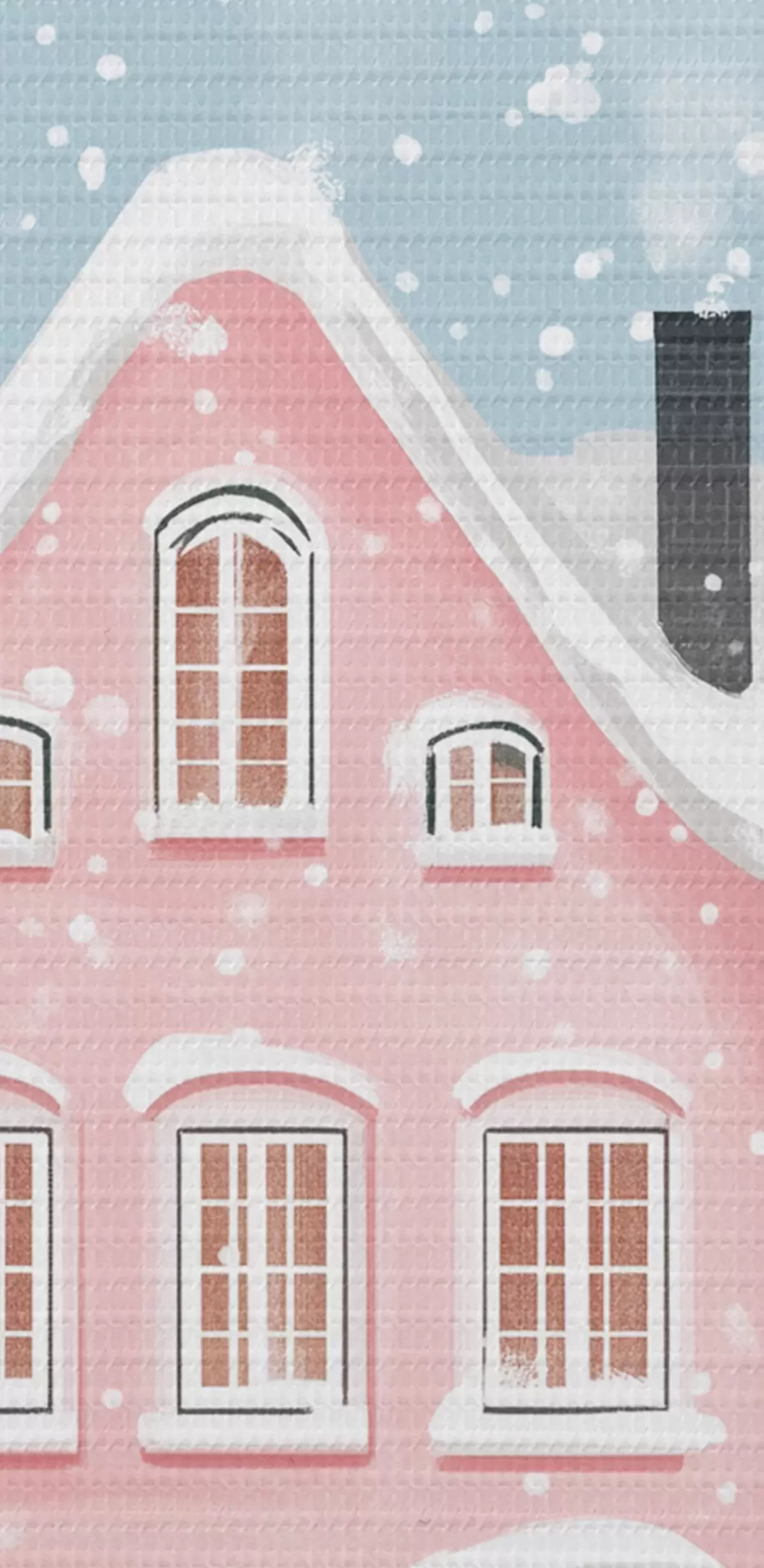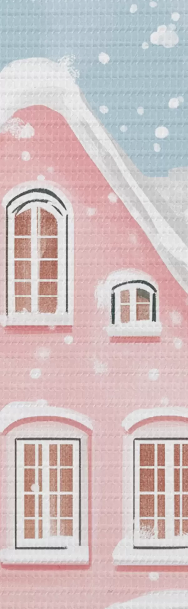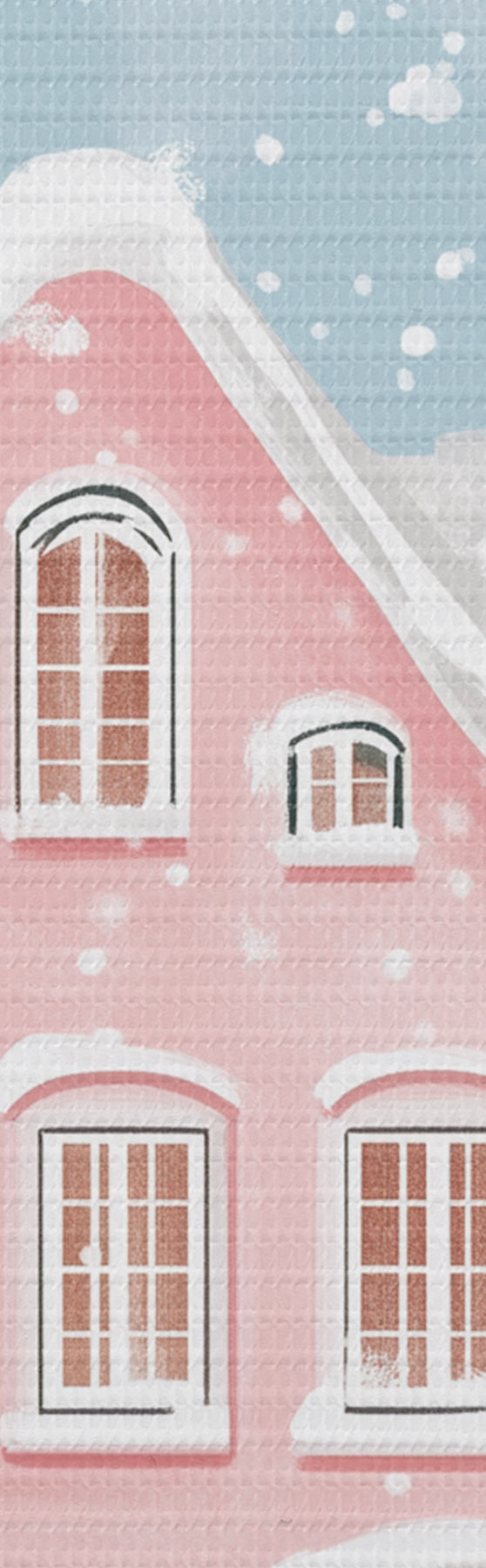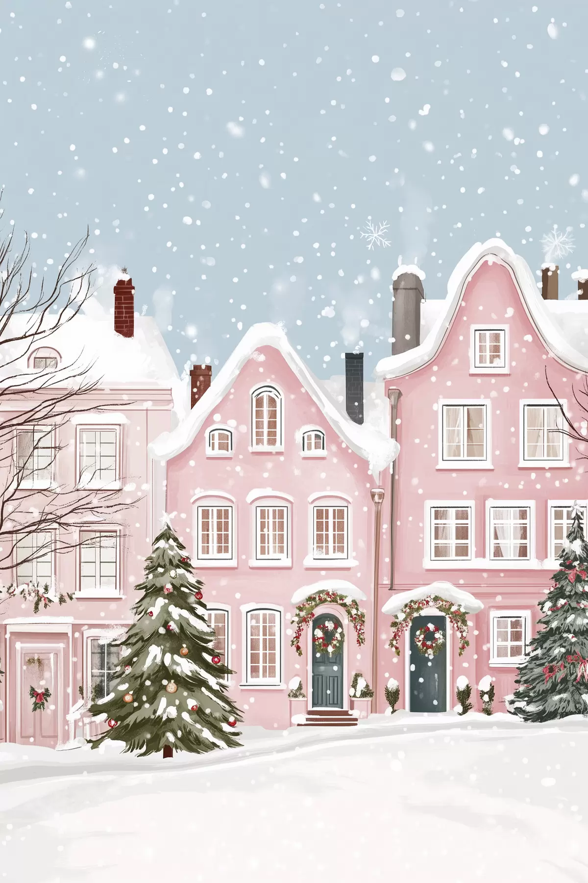 murales de pared Bonita ciudad con bonitas casas rosas, estética invernal, copos de nieve  s42793